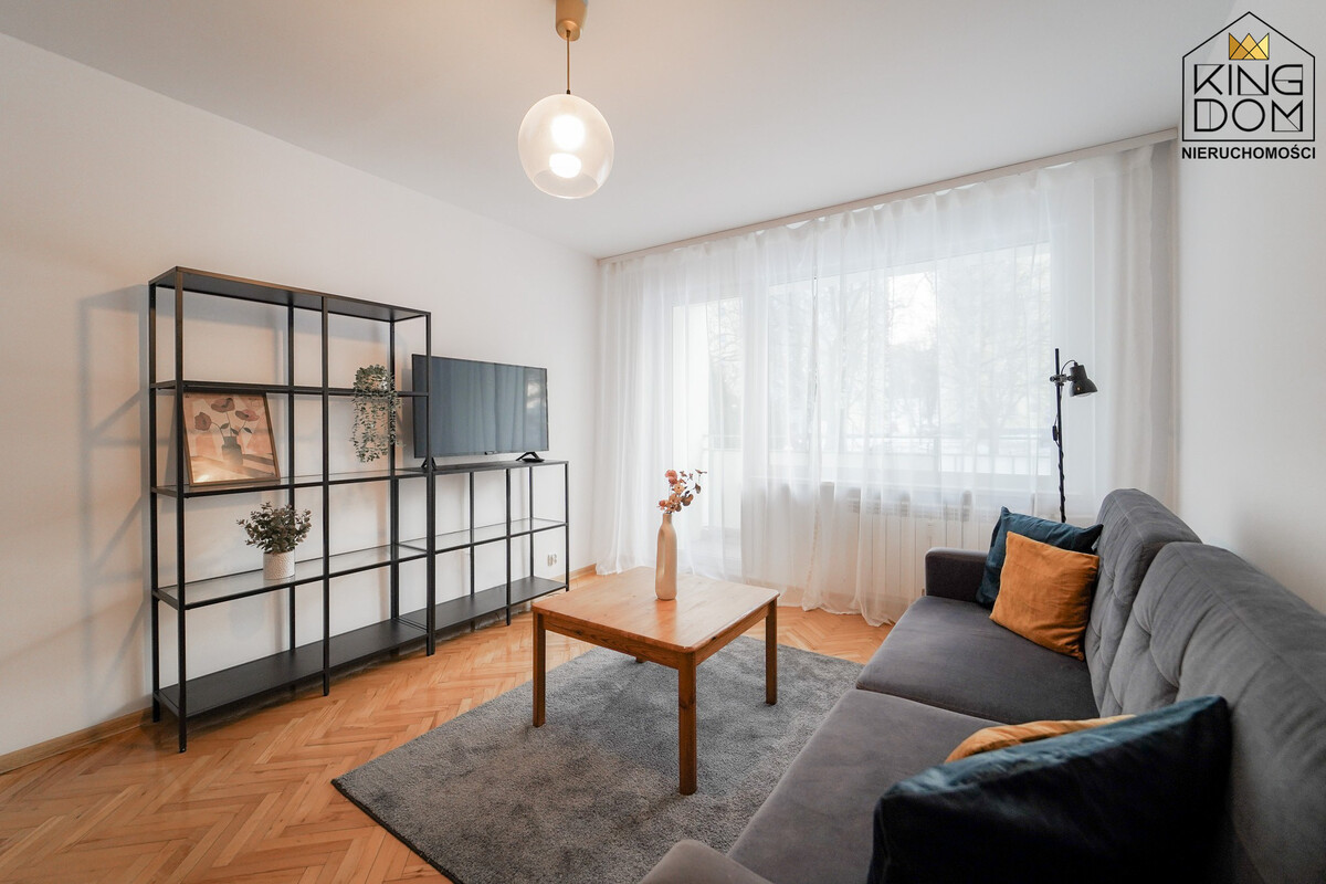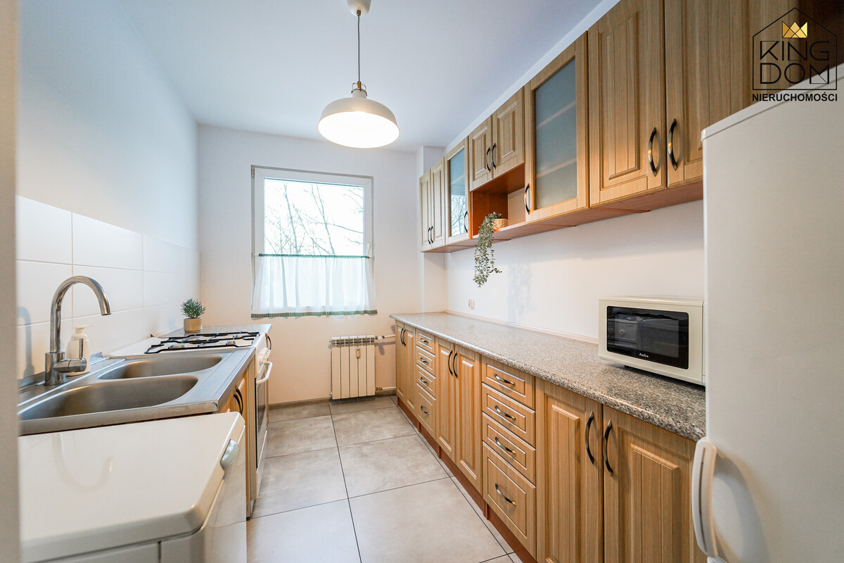 KINGDOM Nieruchomości prezentuje na sprzedaż ustawne 2-pokojowe mieszkanie z dużym balkonem, po generalnym remoncie, wyposażone i umeblowane, położone na parterze w spokojnej lokalizacji.