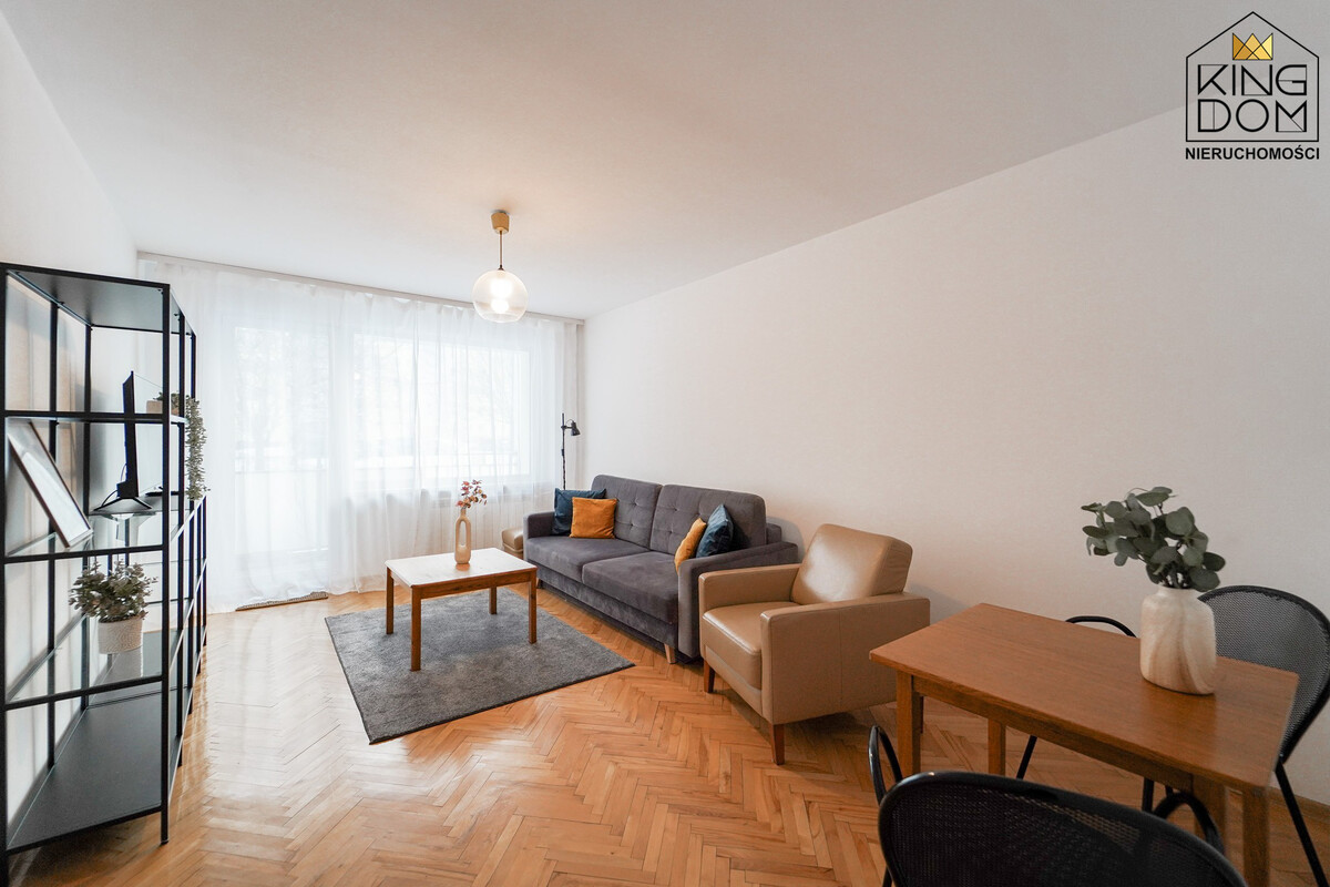 KINGDOM Nieruchomości prezentuje na sprzedaż ustawne 2-pokojowe mieszkanie z dużym balkonem, po generalnym remoncie, wyposażone i umeblowane, położone na parterze w spokojnej lokalizacji.