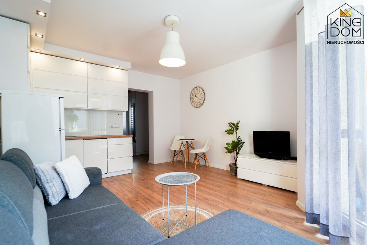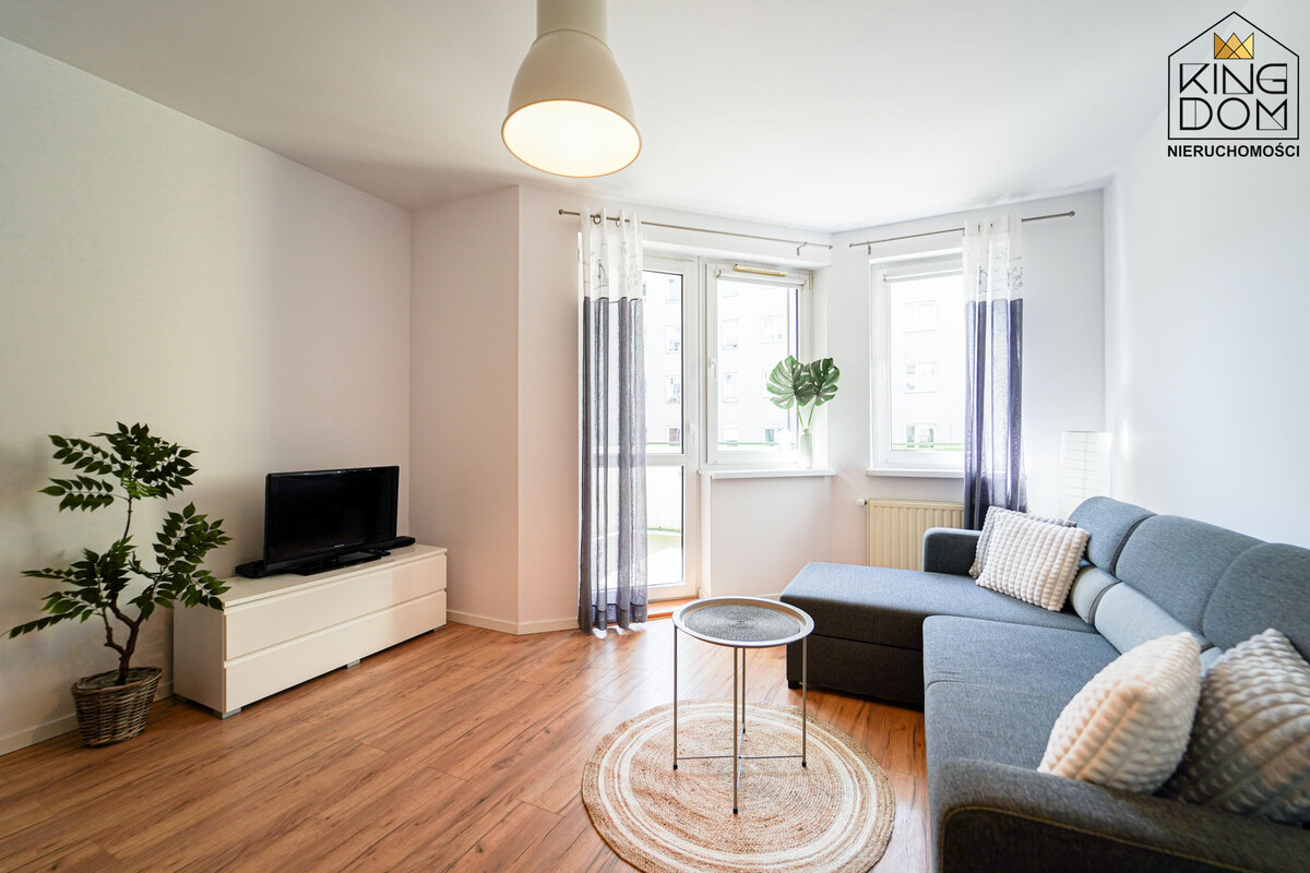 KINGDOM Nieruchomości prezentuje na wynajem 2-pokojowe mieszkanie z balkonem, umeblowane i wyposażone, na cichym i bardzo ładnie zagospodarowanym osiedlu.
