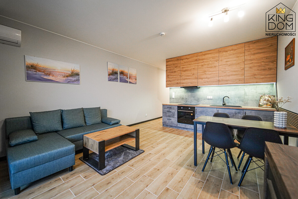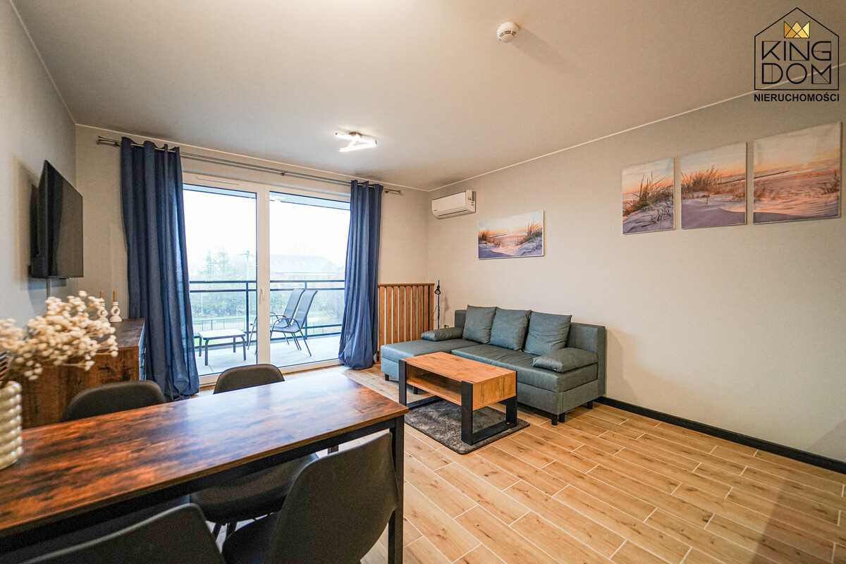 KINGDOM Nieruchomości prezentuje na sprzedaż klimatyzowany, nowoczesny, w pełni umeblowany i wyposażony 2-pokojowy lokal, w nowo powstałym kompleksie SOLEMARE, w sąsiedztwie lasu i z bardzo ładnym widokiem na Zalew Wiślany, w nadmorskiej miejscowości Kąty Rybackie.