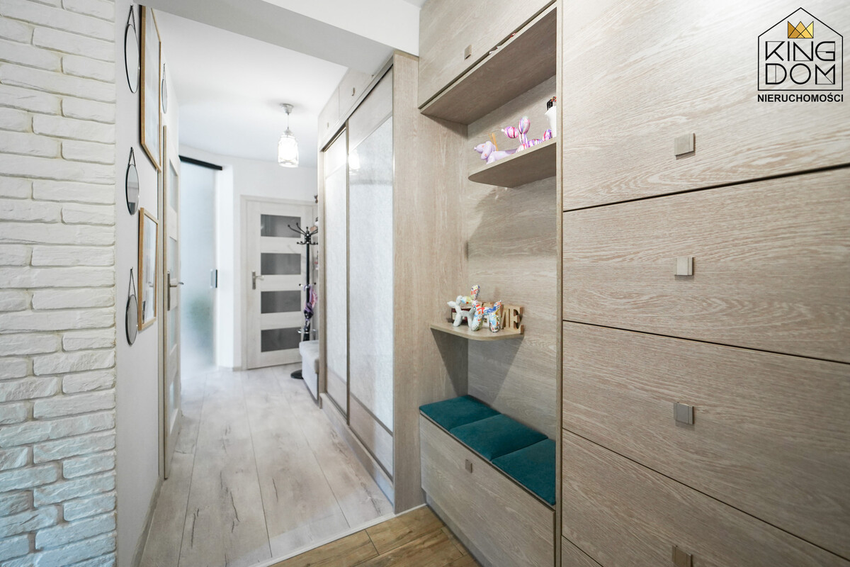 - funkcjonalne i przemyślanie wykonane zabudowy na przedpokoju, pozwalające na optymalne wykorzystanie dostępnej przestrzeni.