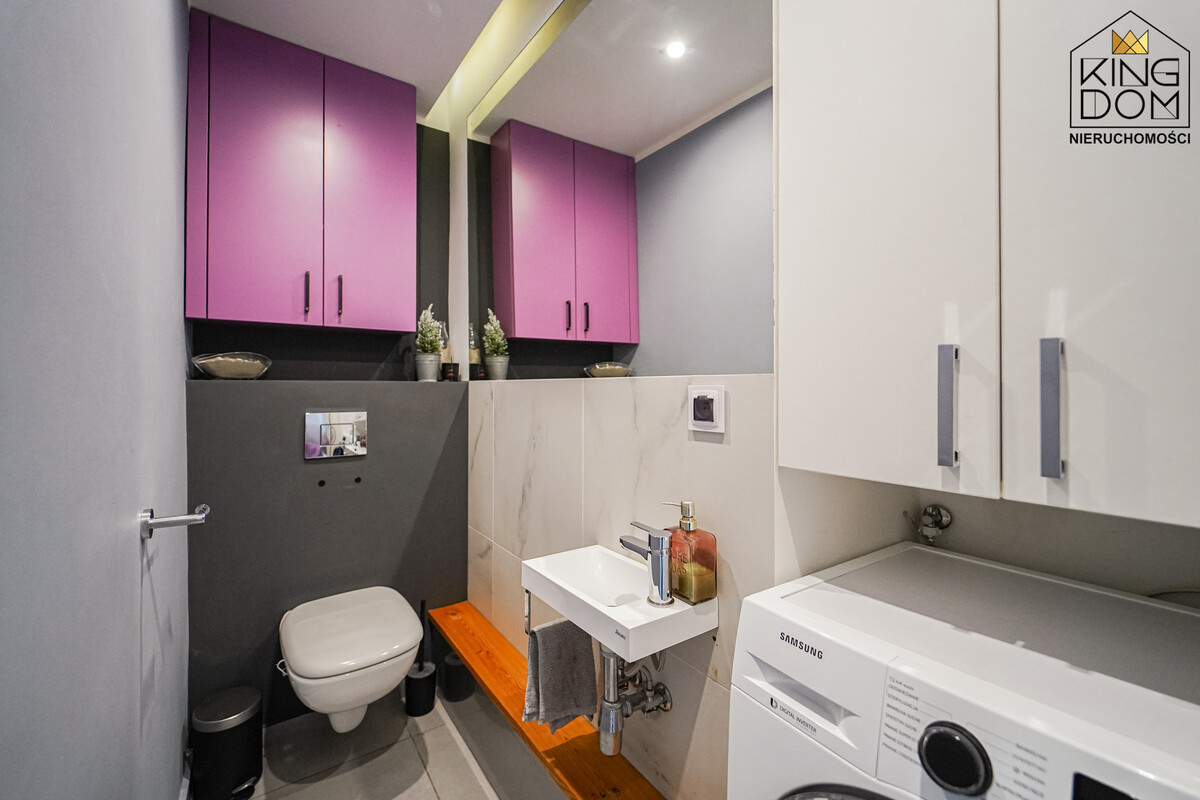 - przedpokój z dwiema szafami w zabudowie, oferującymi dodatkową przestrzeń do przechowywania.