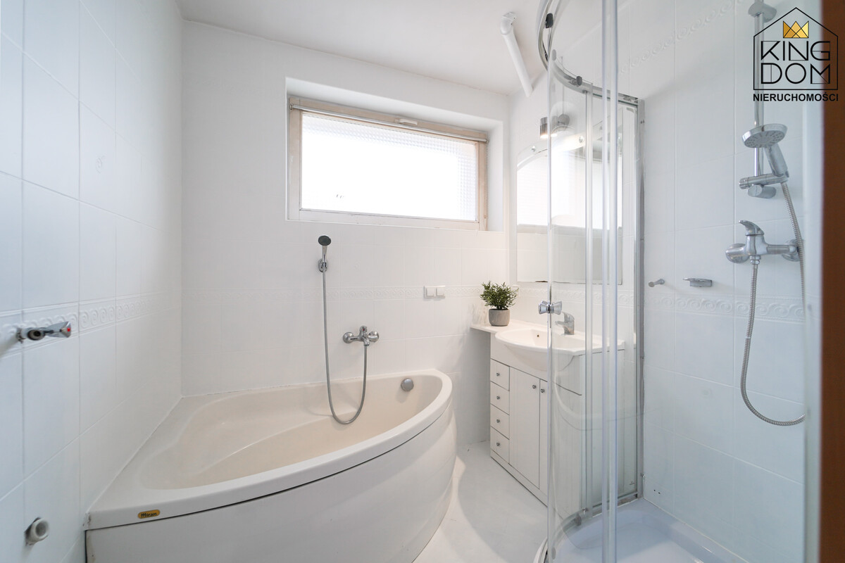 - łazienka z wanną i prysznicem,