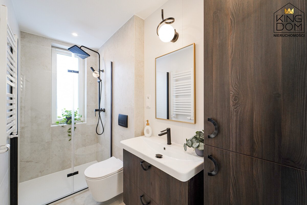 - nowocześnie wykończona łazienka z kabiną prysznicową i wc,