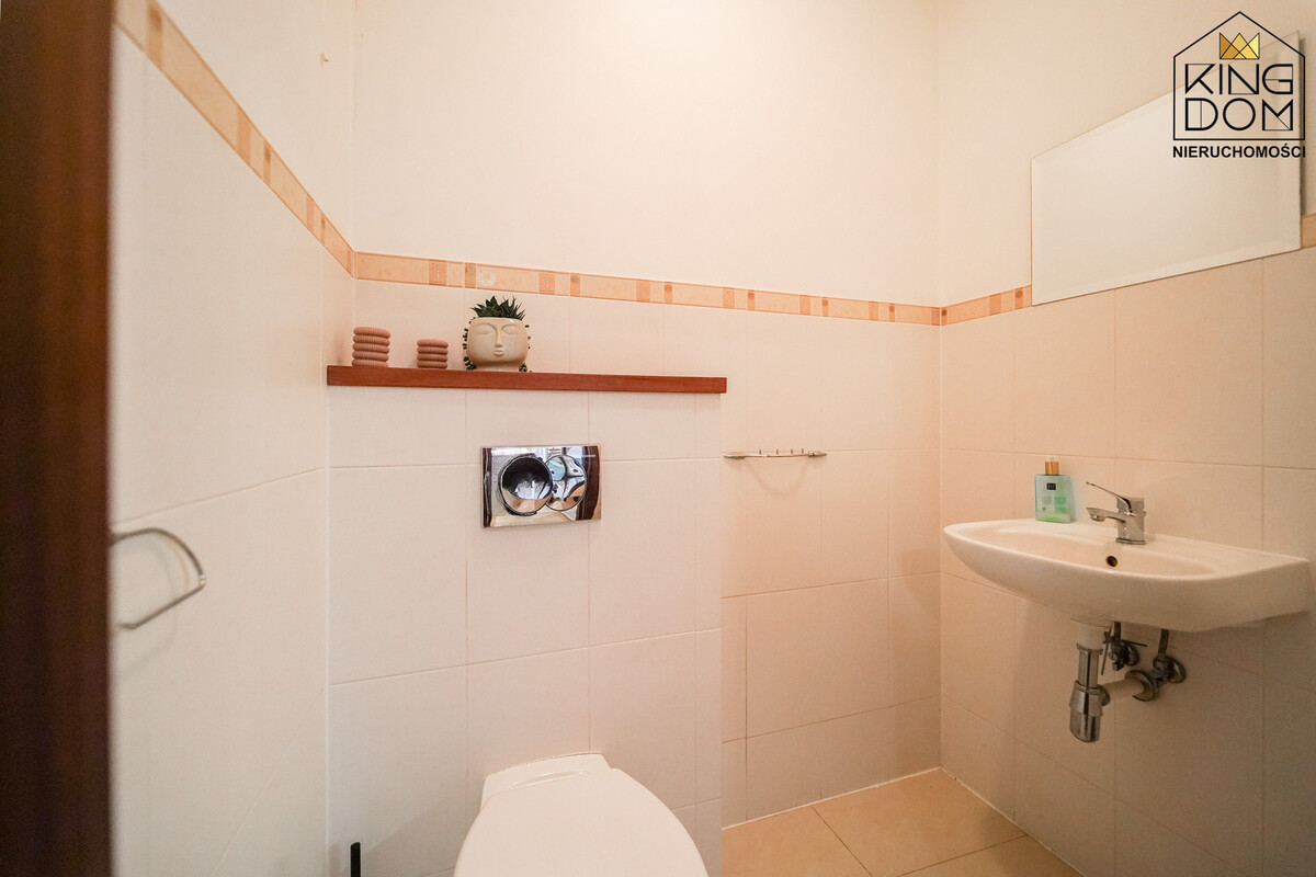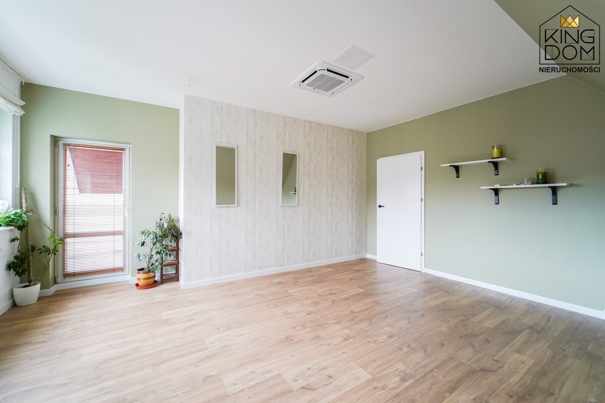 Przemyślany układ pomieszczeń zapewnia wyjątkową funkcjonalność, pozwalając na połączenie życia rodzinnego z prowadzeniem działalności. Dodatkowo jeden z pokoi na II kondygnacji charakteryzuje się bardzo dużym metrażem i układem, który pozwala na podzielenie go na dwa mniejsze, w pełni ustawne pokoje. Daje to nowemu nabywcy dużą elastyczność w aranżacji przestrzeni.