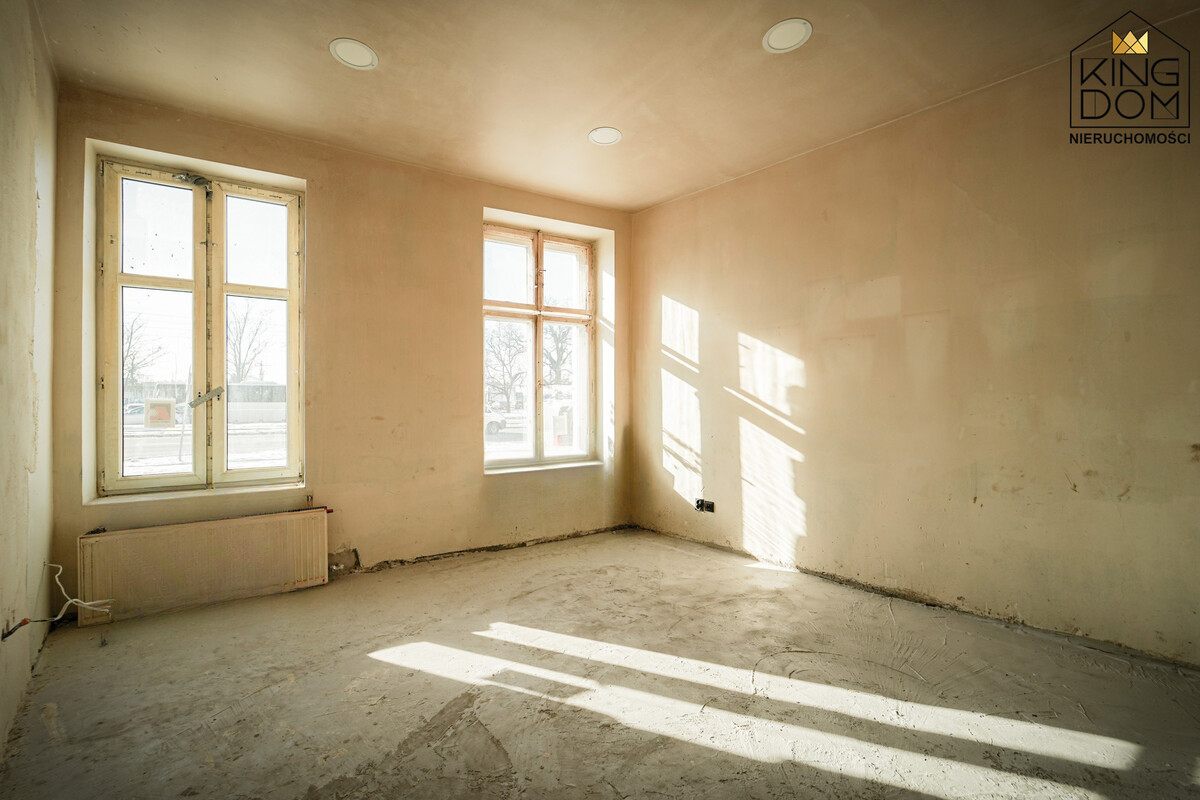 Wnętrze mieszkania wyróżnia się ponadprzeciętną wysokością oraz przestronnymi pomieszczeniami, co daje dużą swobodę w projektowaniu funkcjonalnej i komfortowej przestrzeni, od wygodnego mieszkania rodzinnego po nowoczesną aranżację o loftowym charakterze.