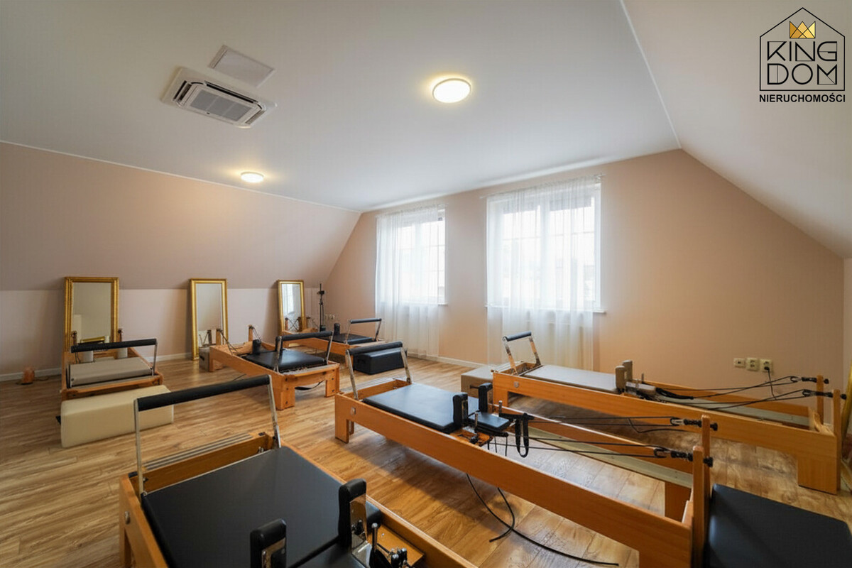 Przemyślany układ pomieszczeń zapewnia wyjątkową funkcjonalność, pozwalając na połączenie życia rodzinnego z prowadzeniem działalności. Dodatkowo jeden z pokoi na II kondygnacji charakteryzuje się bardzo dużym metrażem i układem, który pozwala na podzielenie go na dwa mniejsze, w pełni ustawne pokoje. Daje to nowemu nabywcy dużą elastyczność w aranżacji przestrzeni.