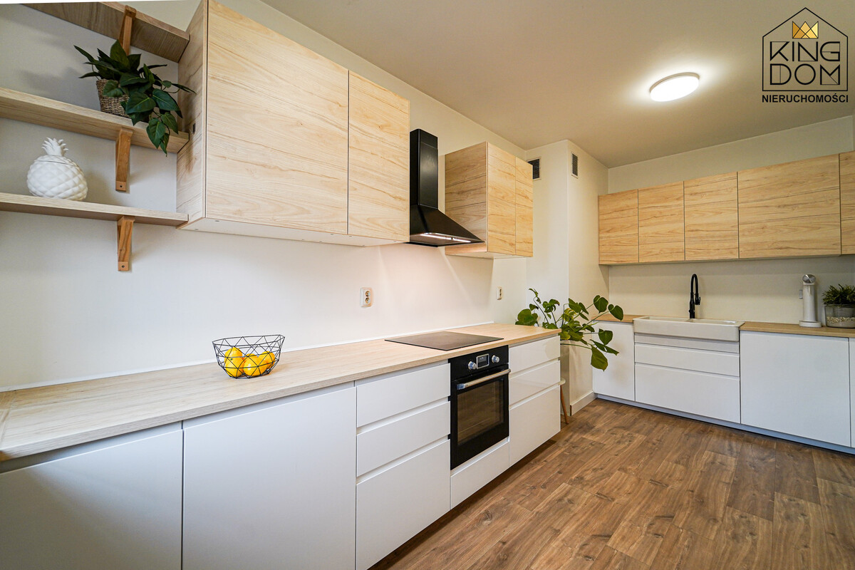 - osobna duża kuchnia w zabudowie ze sprzętami AGD (piekarnik, płyta indukcyjna, okap, zmywarka),