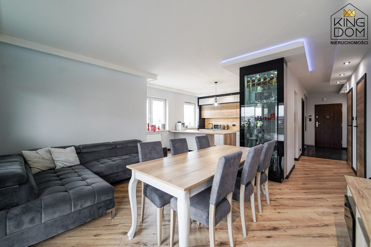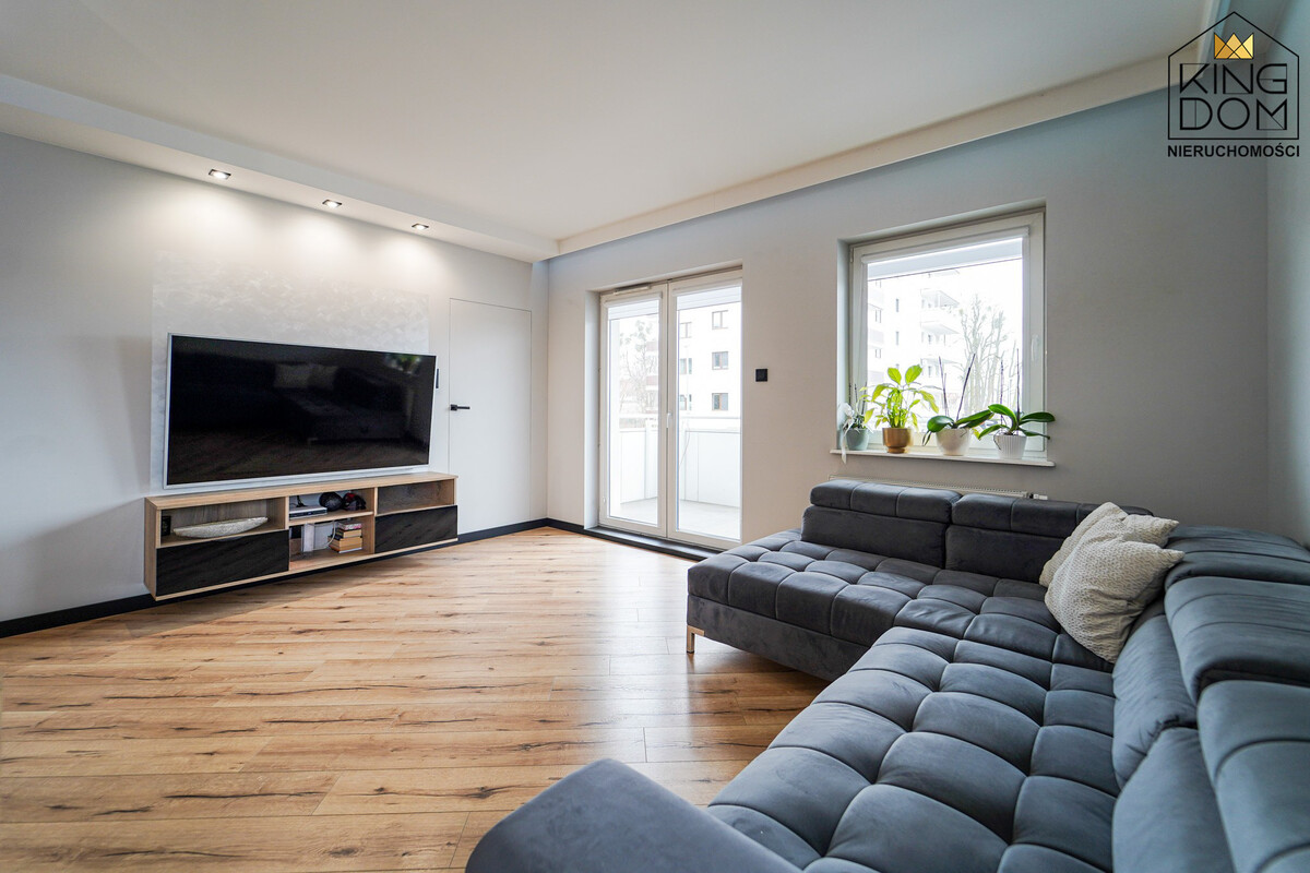 KINGDOM Nieruchomości prezentuje na sprzedaż nowocześnie urządzone, przestronne 3-pokojowe mieszkanie z dużym balkonem, położone na pierwszym piętrze nowoczesnego budynku, w bardzo dobrej lokalizacji. To propozycja dla osób, którzy cenią gotowe rozwiązania, doskonale doświetlone wnętrza oraz najwyższy komfort życia.