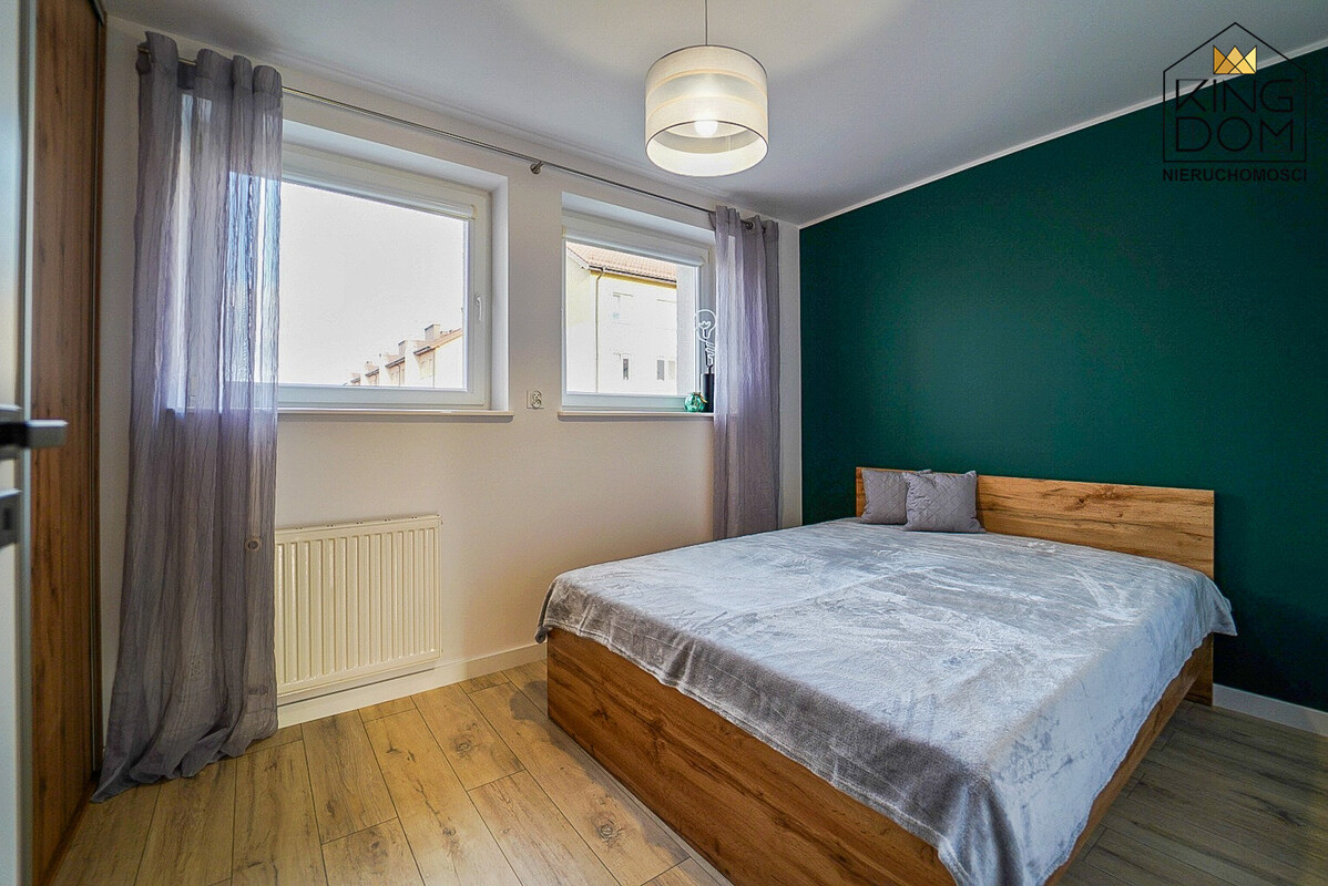 - duża, widna sypialnia z wygodnym łóżkiem oraz pojemną szafą w zabudowie,