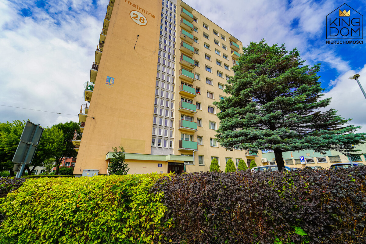 Mieszkanie zlokalizowane jest przy ulicy Teatralnej, w sercu miasta, zapewniając doskonałą komunikację oraz dostęp do wszelkich udogodnień. W pobliżu znajdują się sklepy spożywcze (Biedronka, Rossmann, Kaufland), lokale usługowo-handlowe, apteki, szkoły i przedszkola, co czyni tę okolicę idealnym wyborem zarówno dla młodych osób, jak i rodzin.