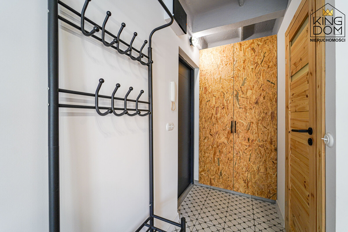- przedpokój z szafą w zabudowie, w której dodatkowo została zamontowana pralka, dzięki czemu nie zabiera miejsca w łazience. Mieszkanie przeszło generalny remont, podczas którego wymieniono instalacje elektryczną oraz wodno-kanalizacyjną. Całość została zaprojektowana funkcjonalnie i z dbałością o każdy detal.