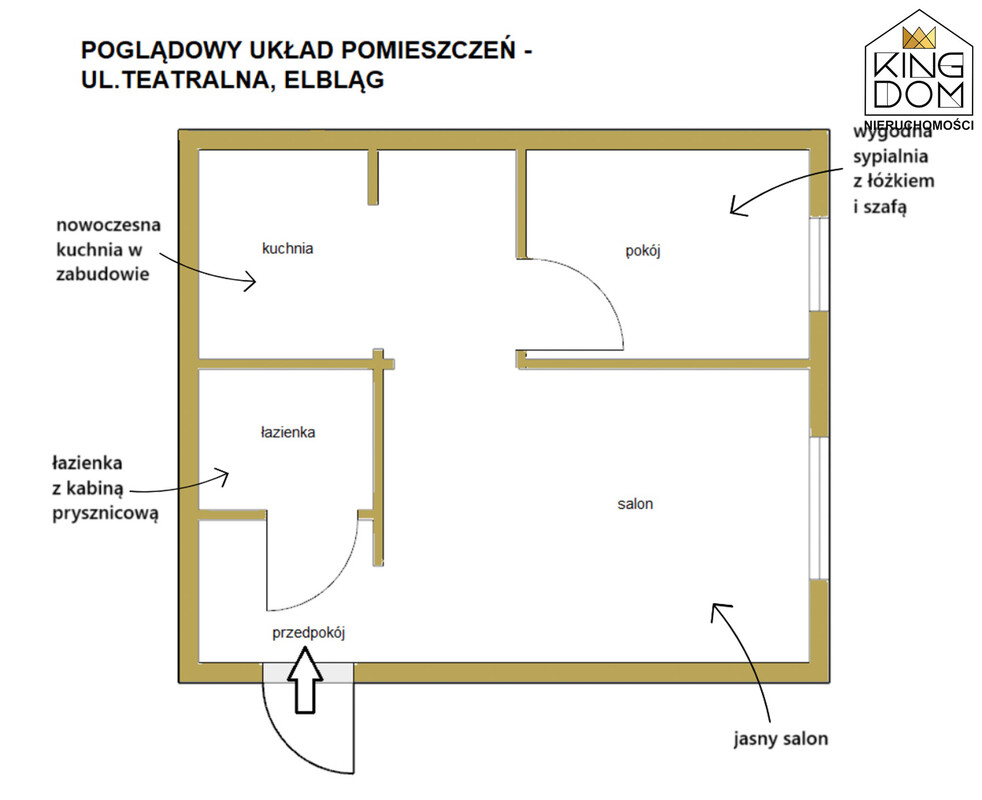 KINGDOM Nieruchomości prezentuje na wynajem nowocześnie wykończone 2-pokojowe mieszkanie, które zachwyca funkcjonalnym układem i wyjątkową lokalizacją. To idealna propozycja dla singla lub pary poszukującej komfortowego lokum w doskonale skomunikowanej części Elbląga, z dostępem do wszystkich miejskich udogodnień.