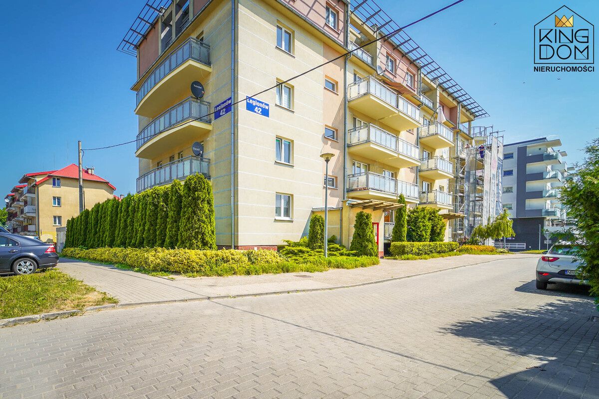 Mieszkanie znajduje się przy spokojnej ulicy Legionów, na zadbanym i świetnie skomunikowanym z pozostałą częścią miasta osiedlu. Dogodne połączenia z przystankami tramwajowymi i autobusowymi umożliwiają łatwy dostęp do innych części miasta.