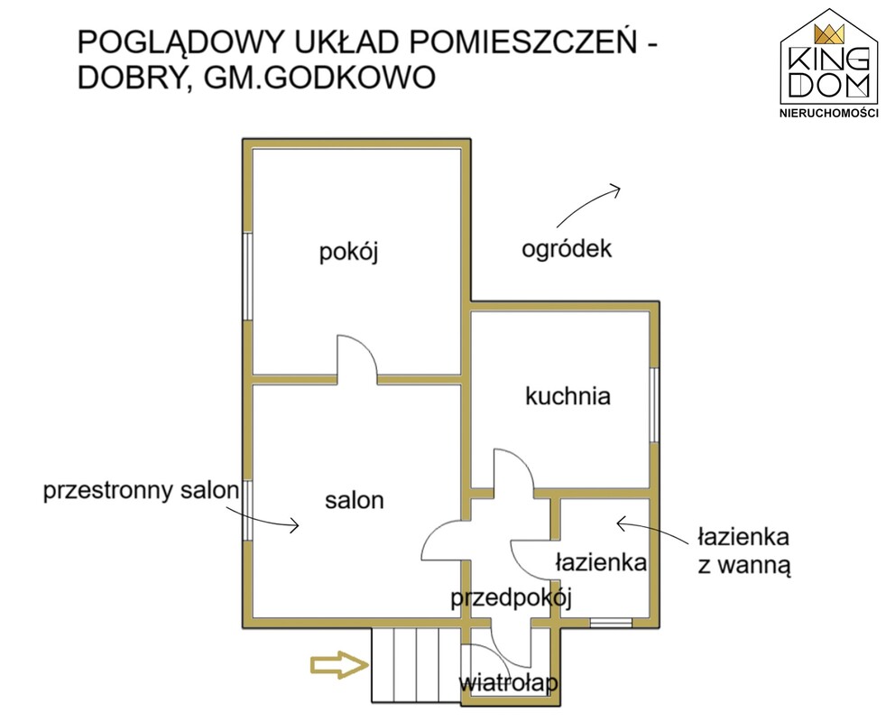 KINGDOM Nieruchomości prezentuje na sprzedaż bezczynszowe 2-pokojowe mieszkanie na parterze, położone w kameralnym budynku w miejscowości Dobry. Lokal oferuje szerokie możliwości własnej aranżacji, posiada przynależny ogródek i znajduje się w otoczeniu przepięknych, zielonych łąk.