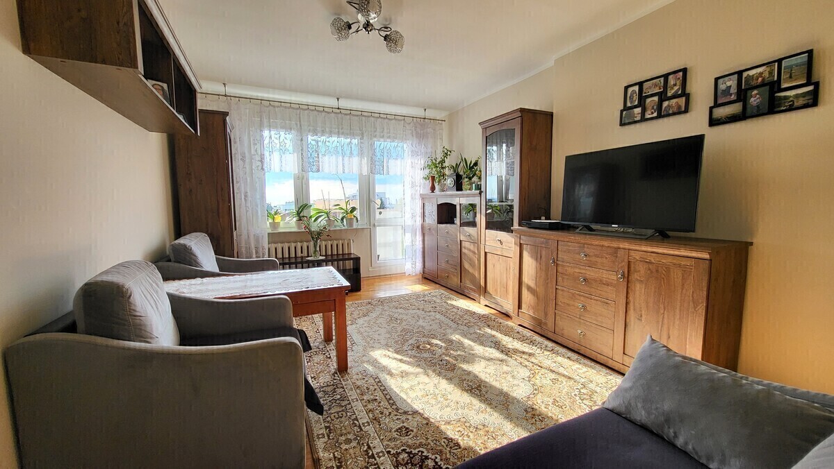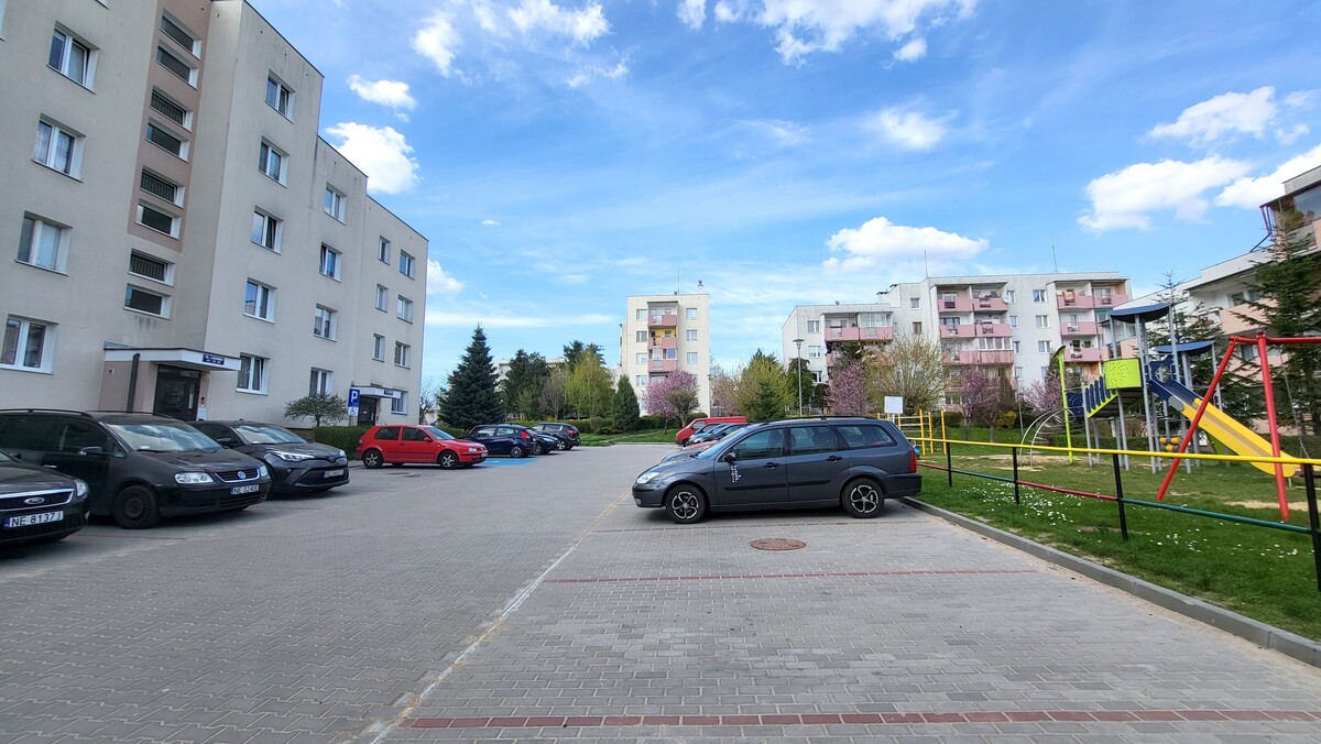 Widok z balkonu bardzo przestrzenny, brak zabudowy w najbliższym otoczeniu. Przed blokiem duży parking, plac zabaw.
