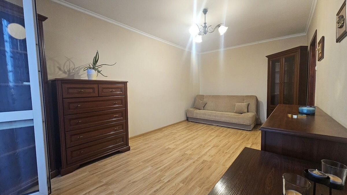 Lokal składa się z przestronnego salonu, sypialni, kuchni z agd i meblami na wymiar ( fronty drewniane ), łazienki z wc i przedpokoju.