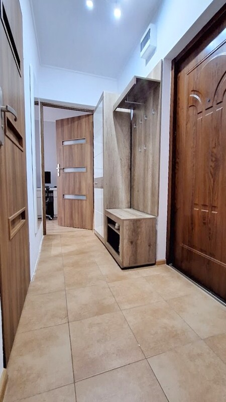 Składa się z dużego pokoju, odrębnej sypialni, kuchni, łazienki z wc i przedpokoju.