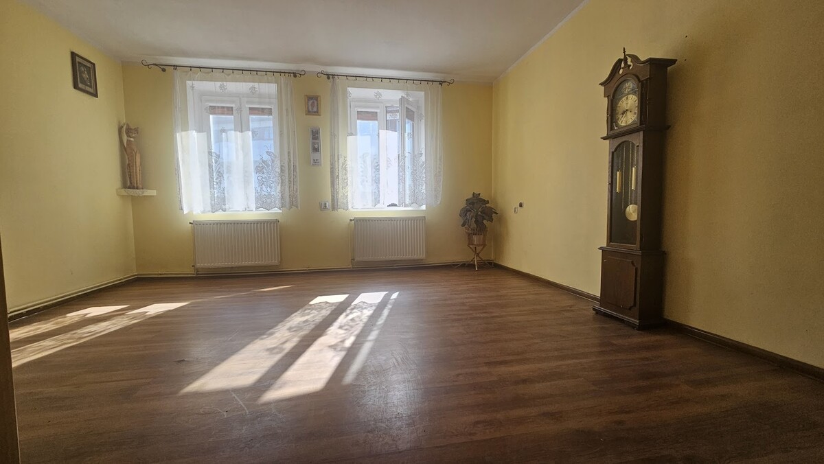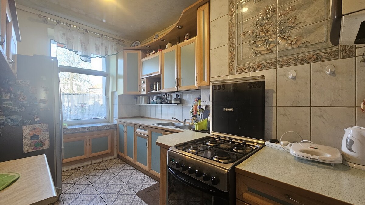Ponadto w jednym pokoju jest czynny piec kaflowy- można go także przerobić na kominek.