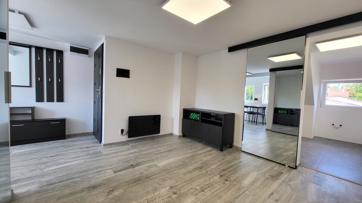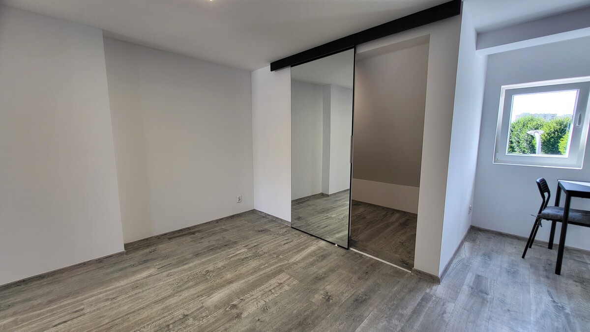 Mieszkanie o powierzchni 26,7 m2 składa się pokoju z wydzieloną garderobą, widnej kuchni, łazienki z wc i przedpokoju. Lokal po generalnym remoncie, wykończony w wysokim standardzie, przesuwne lustrzane drzwi, nowoczesny elektryczny grzejnik i ogrzewacz wody sterowany zdalnie przez aplikację i sieć wifi. Niskie koszty utrzymania.
