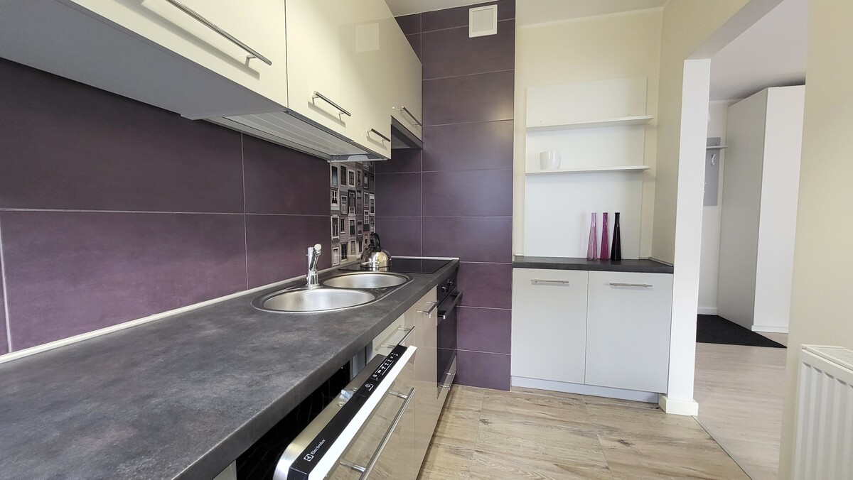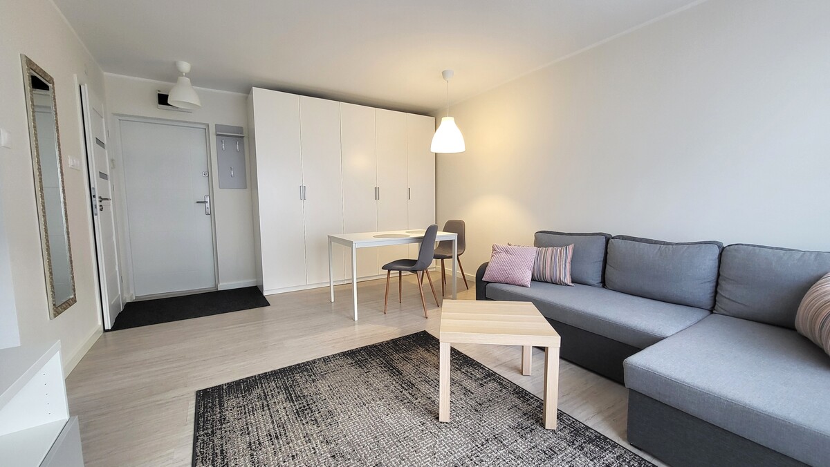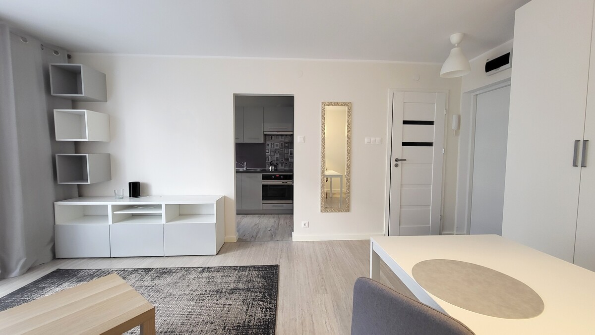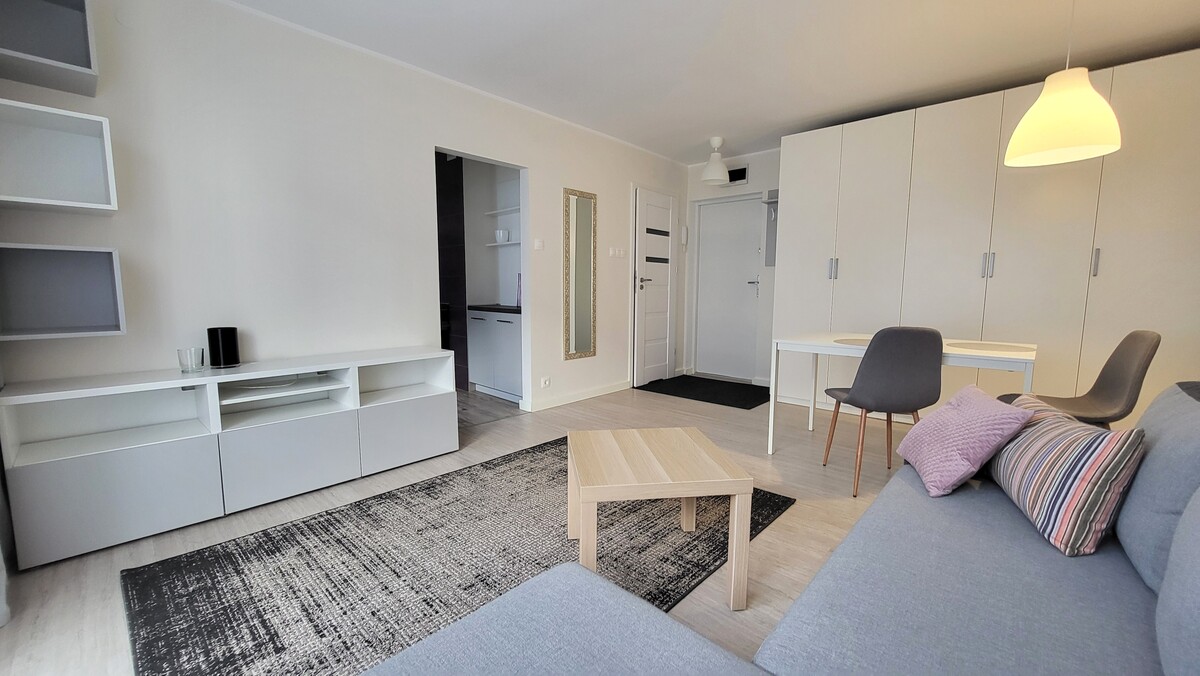 Mieszkanie jest po generalnym remoncie. Na powierzchnię 31,4 m2 składa się salon, kuchnia, łazienka z wc i przedpokój. Jest kompletnie umeblowane i wyposażone. Kuchnia w zabudowie ze sprzętem AGD, w łazience pralka, w salonie pojemne szafy, kanapa, szafka rtv oraz stół i krzesła. Z salonu wyjście na balkon. Wszystkie media z miasta.