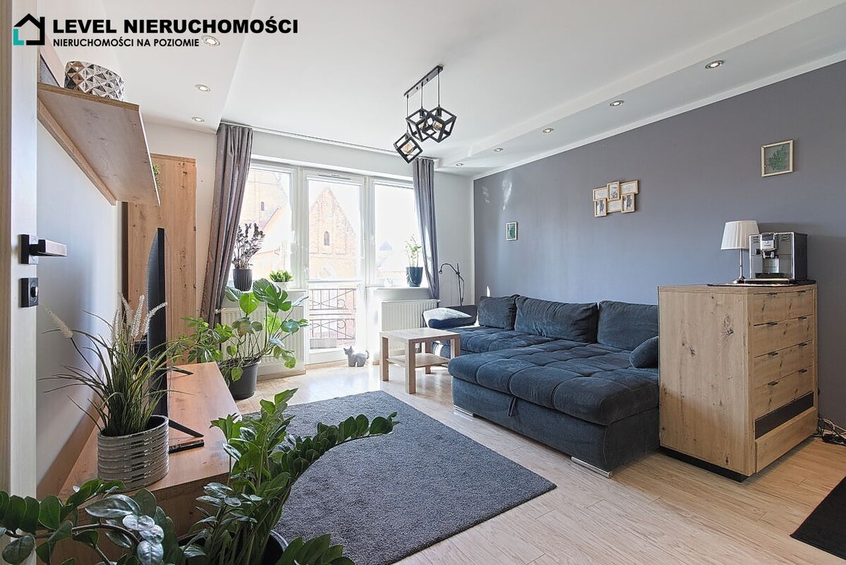 Na sprzedaż posiadamy mieszkanie dwupoziomowe w Elblągu na starówce o powierzchni 48,01 m2.Nieruchomość zlokalizowana na trzecim oraz czwartym piętrze z wystawą okienną od strony zachodniej z widokiem na „ Galerie EL” . Poziom pierwszy składa się z salonu z aneksem kuchennym z wyjściem na balkon, toalety oraz przedpokoju. Poziom drugi składa się z sypialni z balkonem, łazienki oraz przedpokoju z zabudowaną szafą. Jest to mieszkanie z klimatem idealne na start lub pod inwestycję. Wszystkie media dostarczane z miasta w tym ciepła woda oraz ogrzewanie. Miesięczne opłaty do wspólnoty w podstawie 512 zł. Do mieszkania przynależy pomieszczenie piwniczne o powierzchni 3,46 m2.W okolicy znajduje się duża ilość kawiarni, restauracji, liczne zabytki oraz bulwar nad rzeką Elbląg.