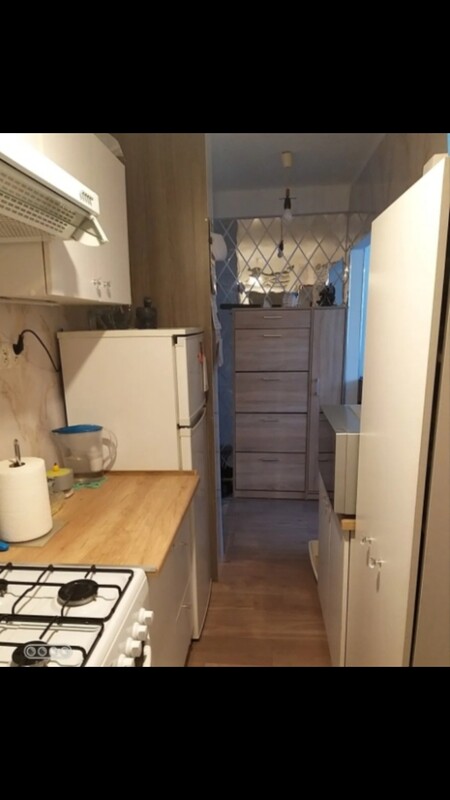Lokal ma powierzchnię 27 m2, składa się z salonu z balkonem, kuchni w zabudowie ze sprzętami AGD (lodówka, piekarnik) i łazienki z wanną, wc i pralką oraz przedpokoju.