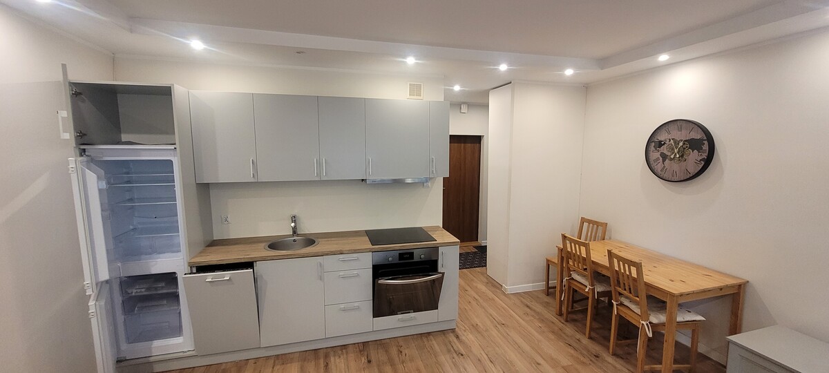 Mieszkanie jest w pełni umeblowane i gotowe do zamieszkania, idealne dla singla lub pary.