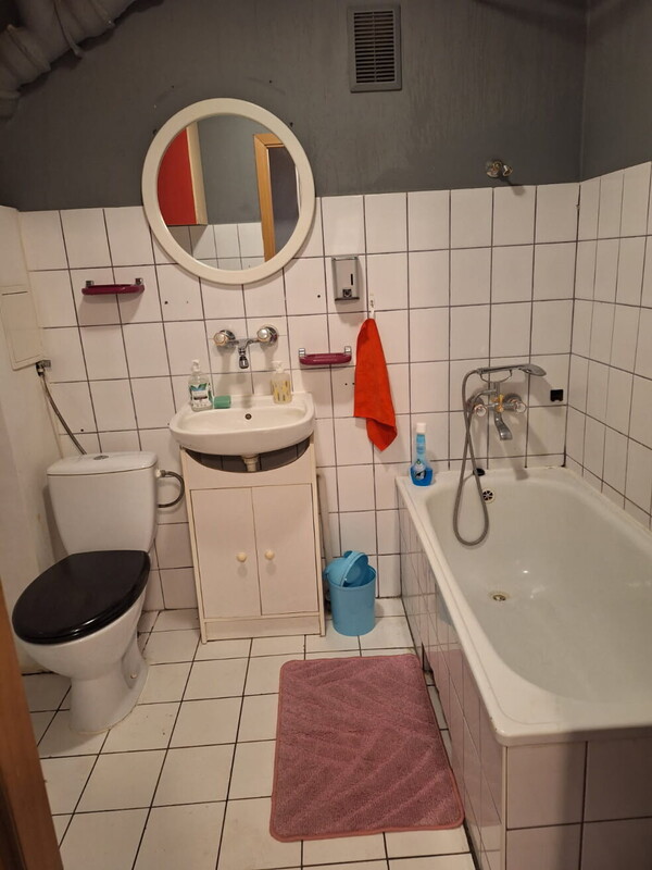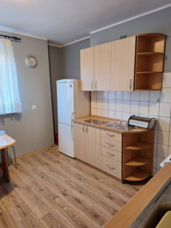 Mieszkanie jest umeblowane, pralka, lodówka.