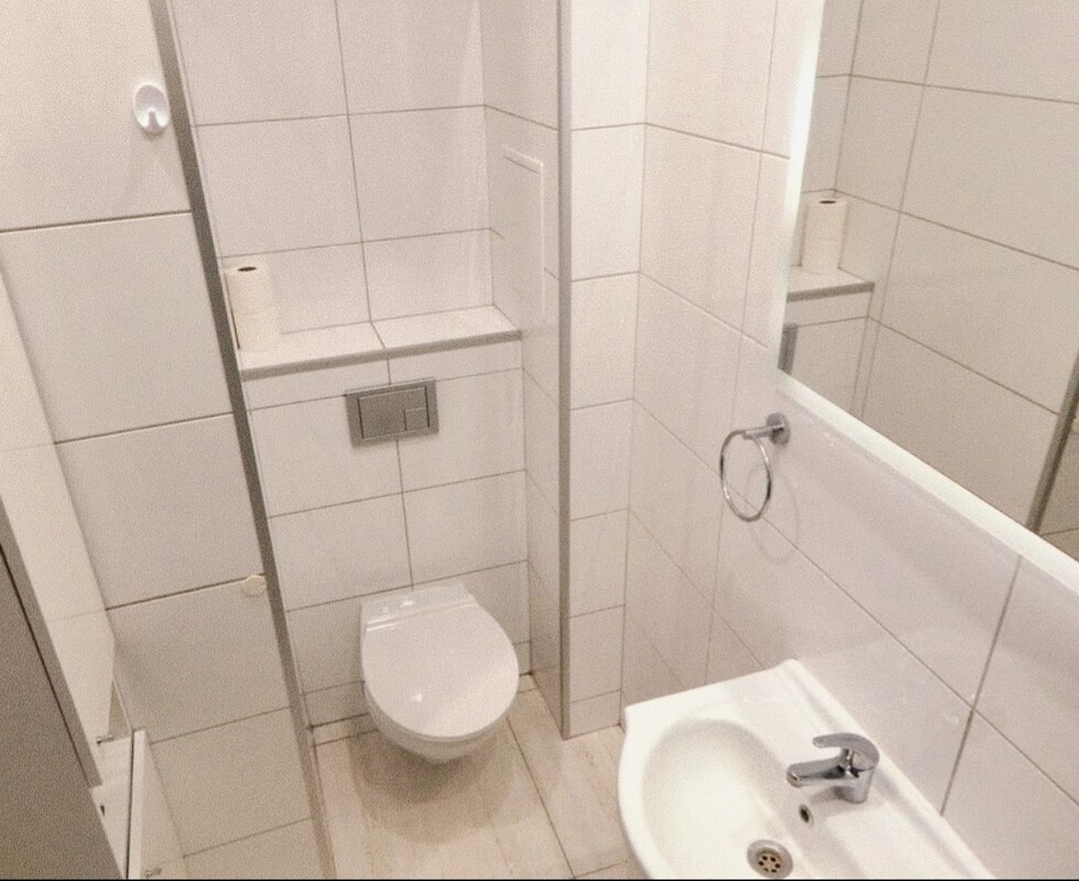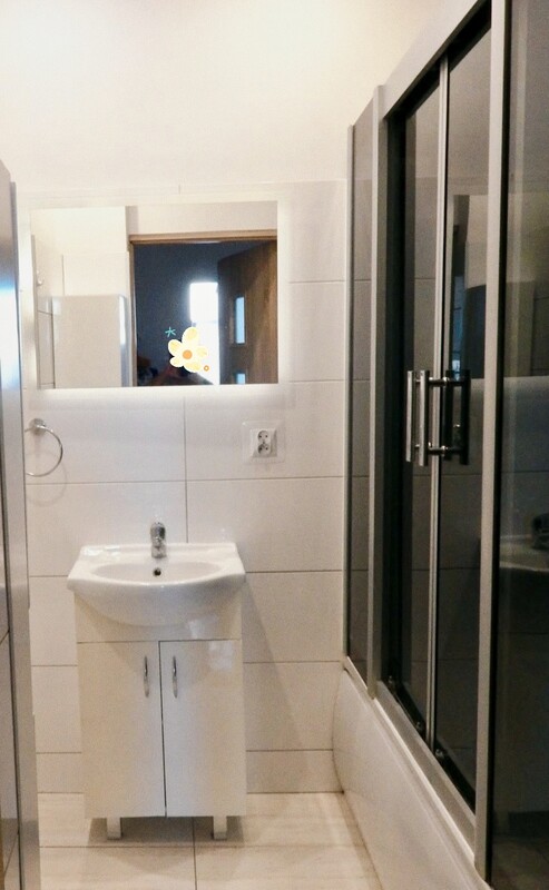 * Łazienka z kabiną prysznicową.