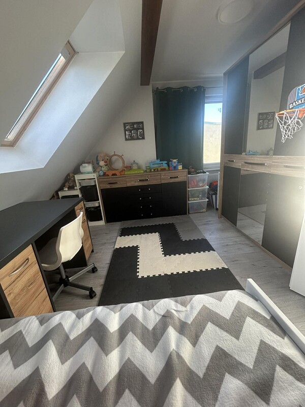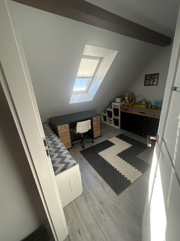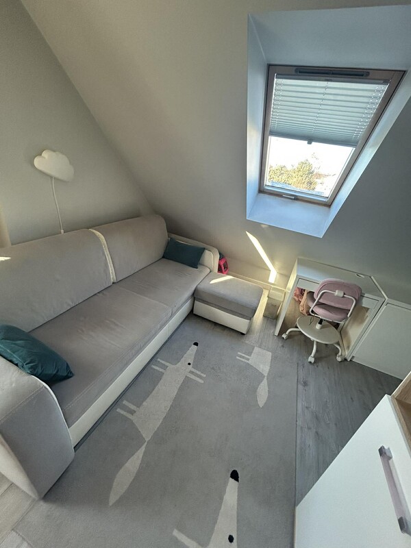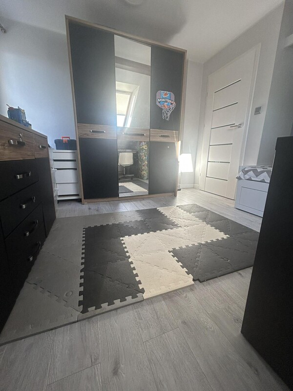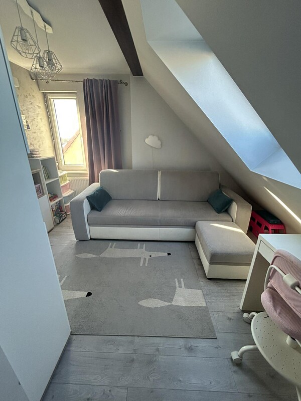 Mieszkanie o powierzchni 81 m², zlokalizowane na pierwszym piętrze przy ulicy Poprzecznej. Na dole znajduje się sypialnia, salon, kuchnia oraz łazienka z prysznicem, u góry dwie sypialnie, przedpokój i łazienka z wanną. Do mieszkania przynależy ogródek, dwa garaże oraz piwnica. Ogrzewanie gazowe, niski czynsz. Funkcjonalna i spokojna okolica.