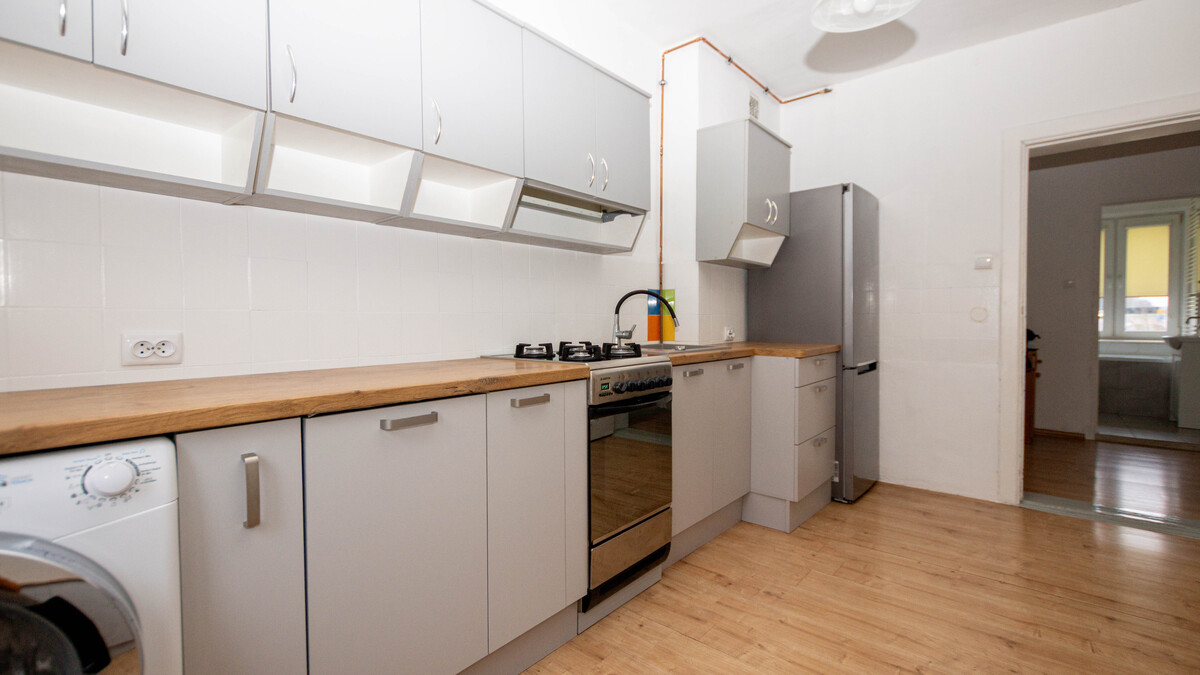 - Rozkład mieszkania: dwa ustawne pokoje, kuchnia z nową zabudową, łazienka z wanną i WC, przestronny przedpokój