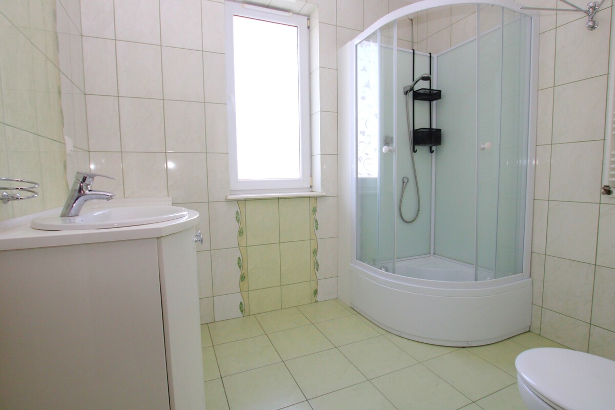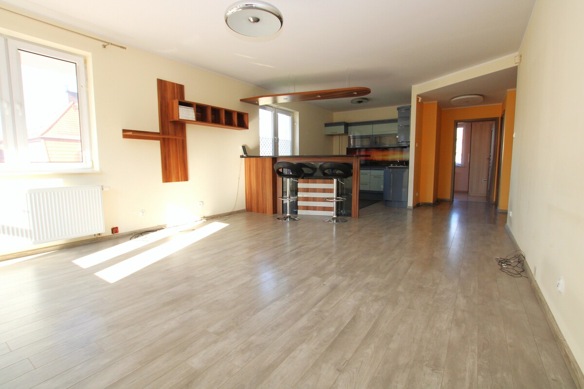 Obszerny salon dzienny (ok.35 m²) z aneksem kuchennym – idealna, otwarta przestrzeń do wspólnego spędzania czasu. Aneks kuchenny z praktyczną wyspą pozostaje w cenie. Dwie odrębne sypialnie, w tym jedna z pojemną szafą na wymiar. Łazienka z oknem i kabiną prysznicową, utrzymana w jasnej kolorystyce. Dodatkowe pomieszczenie na pralkę oraz wygodny przedpokój.
