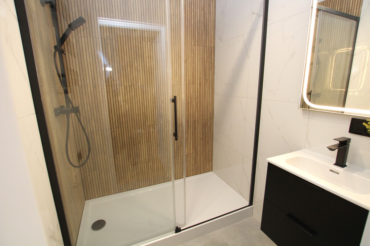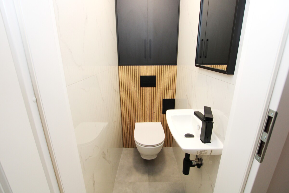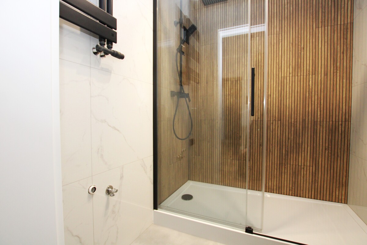 - Standard Premium: nowoczesna łazienka z ponadczasowym gresem, panele bardzo dobrej jakości na podłogach oraz nowe drzwi wewnętrzne i zewnętrzne.