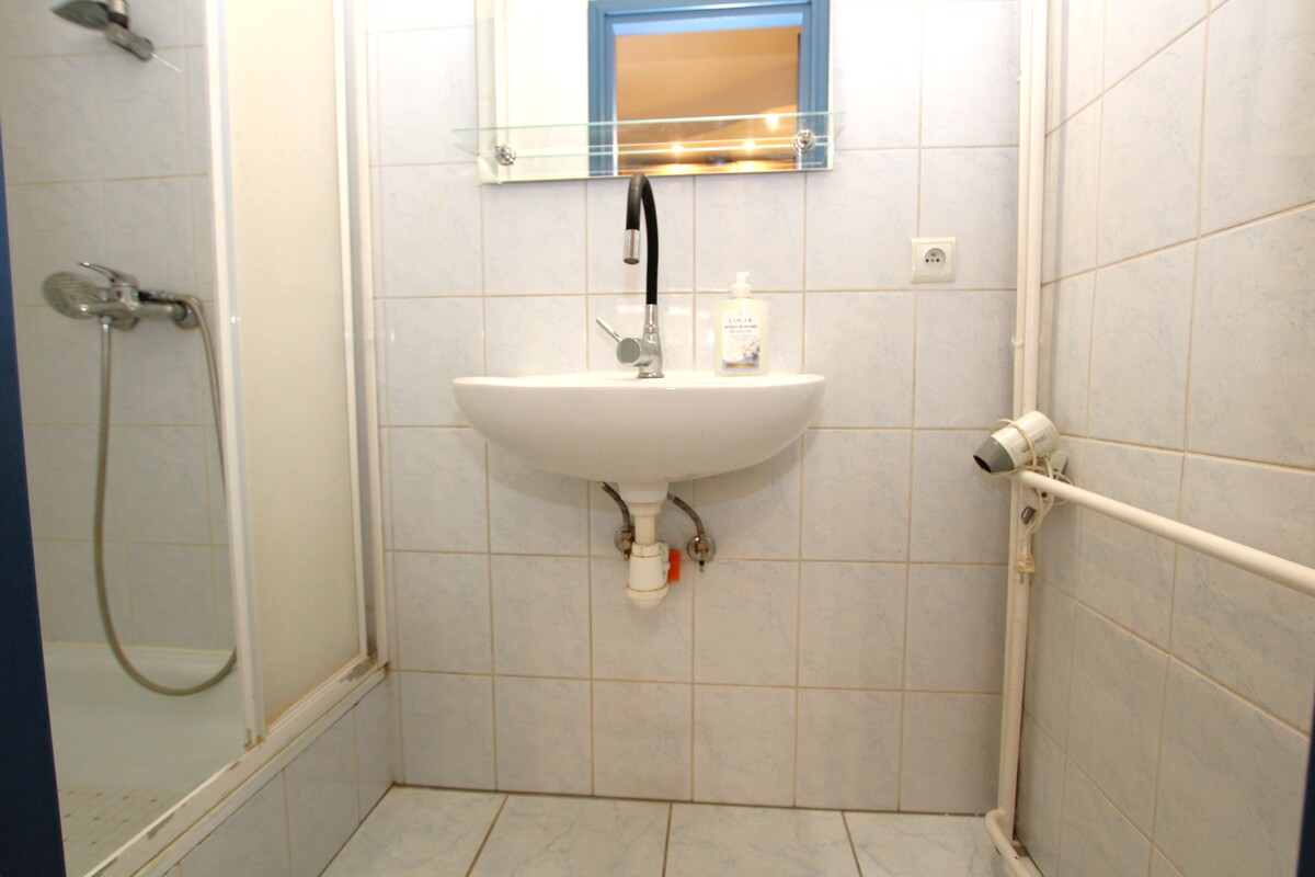 * Łazienka z kabiną prysznicową.