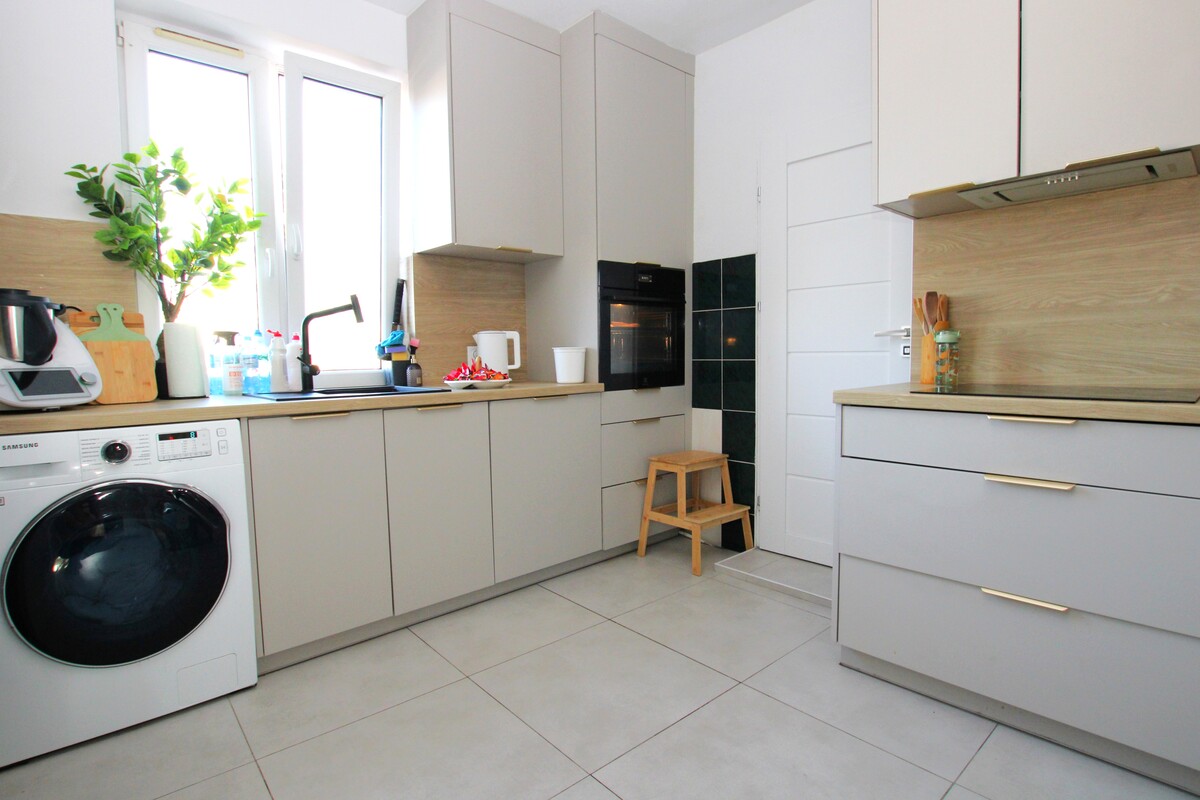 Oryginalny układ: 5 pokoi – to idealna opcja dla dużej rodziny, podziału na strefy pracy i relaksu. Serce mieszkania stanowi wyremontowana i wygodna kuchnia, z nowoczesną zabudową w modnym kolorze cappuccino, która pozostaje w cenie nieruchomości.