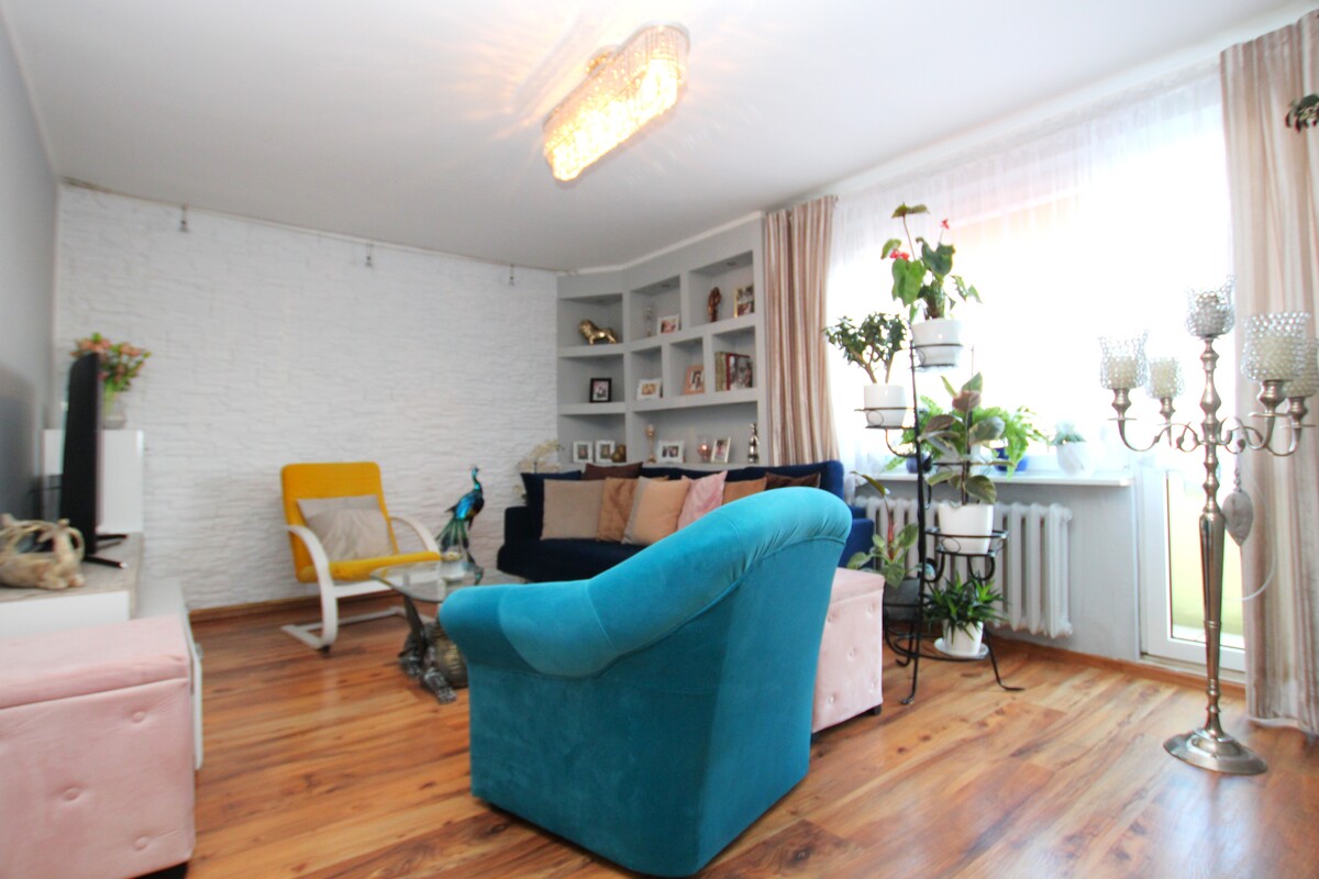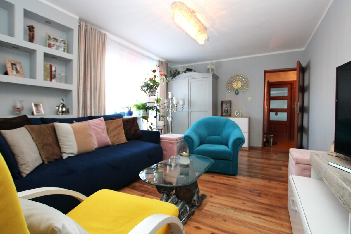 W przedpokoju znajduje się praktyczna szafa z lustrem, która pozostaje w cenie. Salon z wyjściem na balkon.