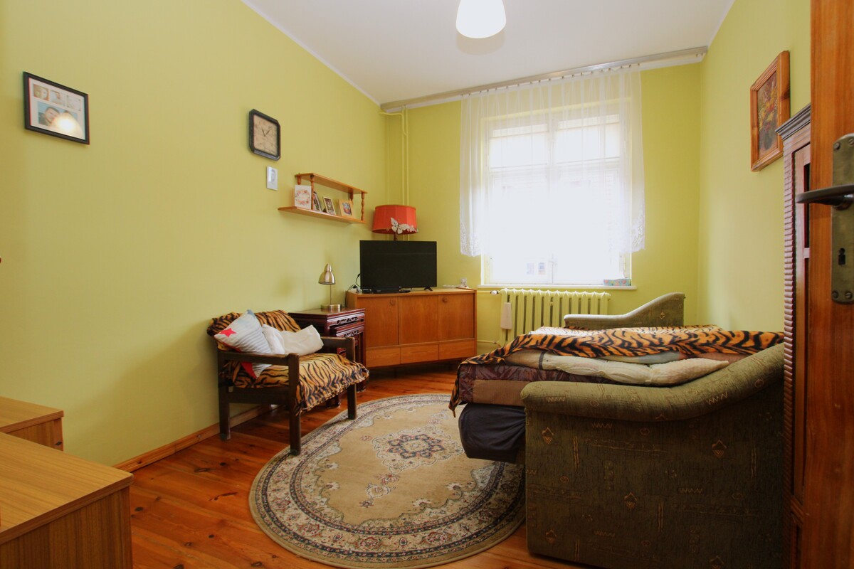 Choć wnętrze wymaga remontu, to jego potencjał jest ogromny. Deski sosnowe na podłogach i oryginalna stolarka okienna czekają na drugie życie. Dodatkowym atutem jest duża piwnica o pow.19,10 m2 oraz możliwość korzystania ze wspólnego ogródka. W budynku niedawno wymieniono dach oraz instalację gazową, co gwarantuje bezpieczeństwo i solidną bazę do metamorfozy.