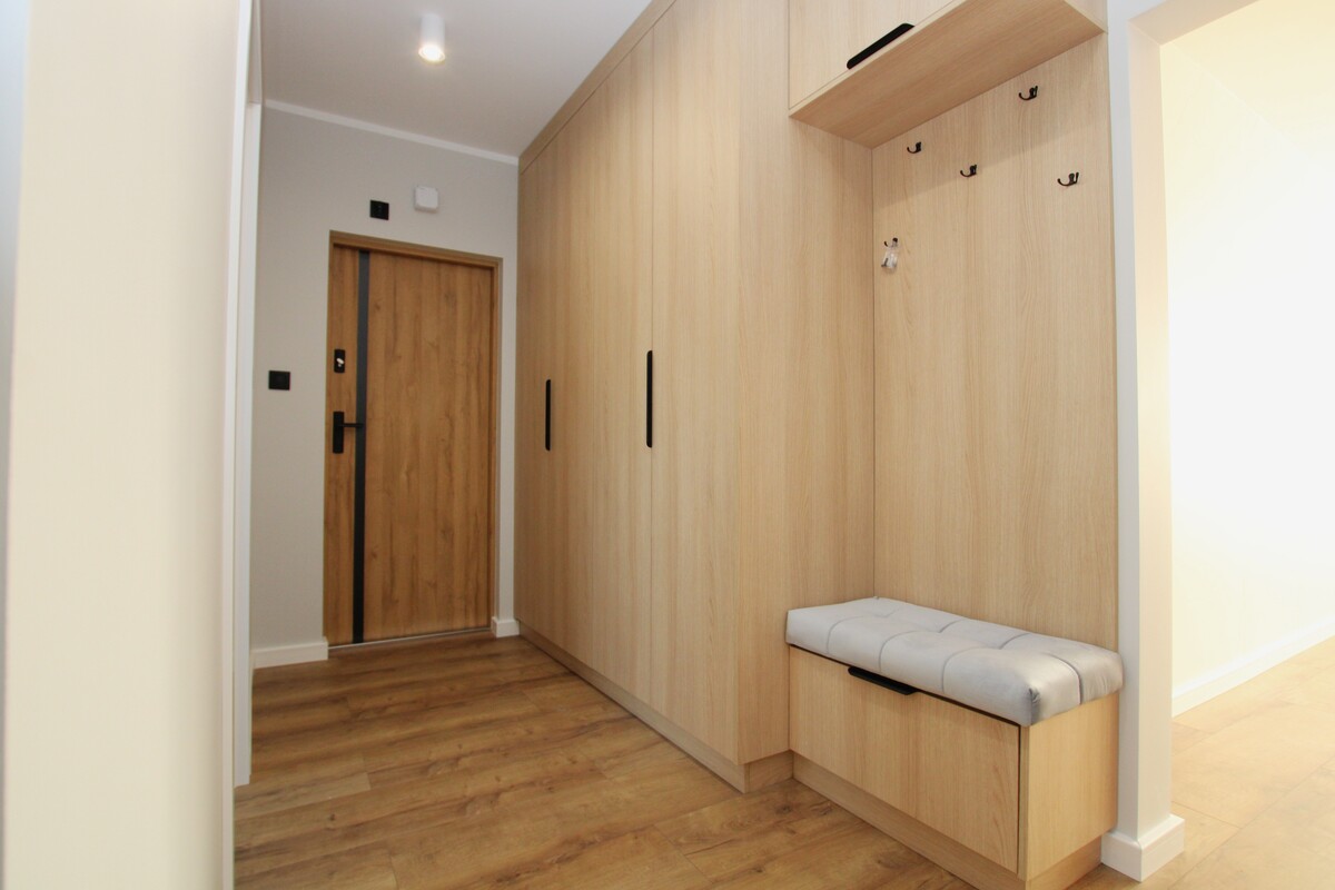Na powierzchni 48 m2 znajdziesz salon z aneksem, dwie odrębne i ustawne sypialnie, pokoje nie są przejściowe, gustowną łazienkę z prysznicem oraz przedpokój z obszerną szafą garderobianą.