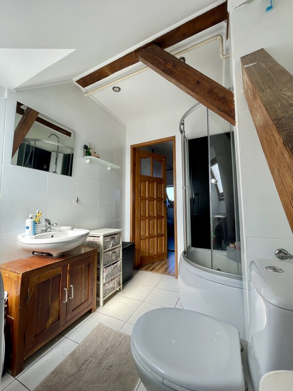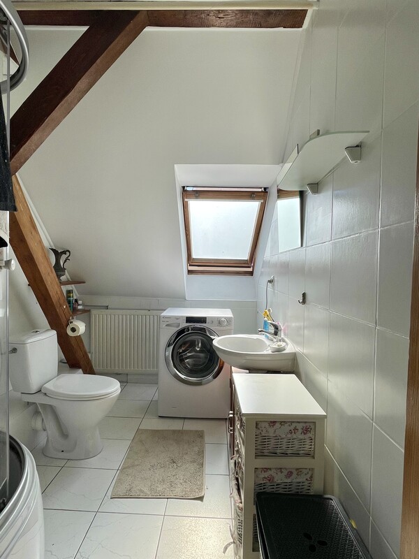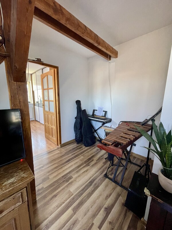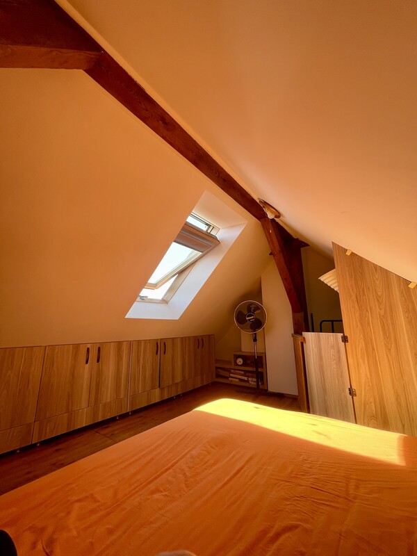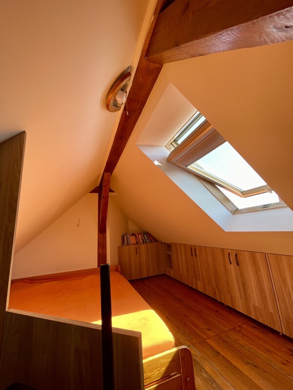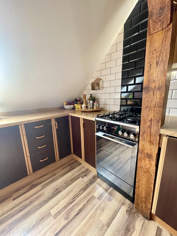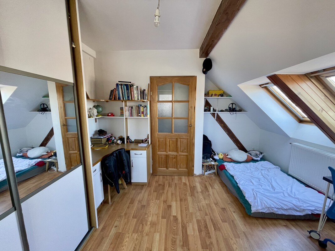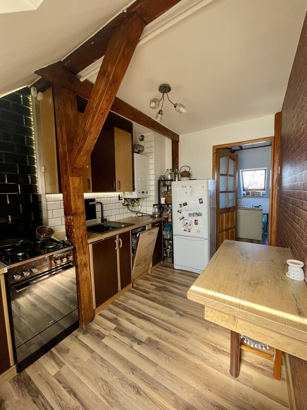 Atutem nieruchomości jest przestronna, otwarta strefa dzienna, jasne wnętrza, funkcjonalnie wykorzystane skosy oraz niepowtarzalny charakter, którego trudno szukać w standardowych mieszkaniach. Drewniane elementy konstrukcyjne, okna połaciowe i ciepłe wykończenie tworzą przytulną, bardzo klimatyczną przestrzeń do życia.