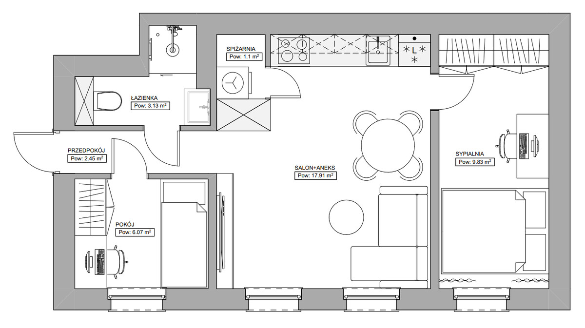 Lokal jest doskonale zaprojektowany — każdy metr został przemyślany, by zapewnić maksymalną funkcjonalność i komfort.