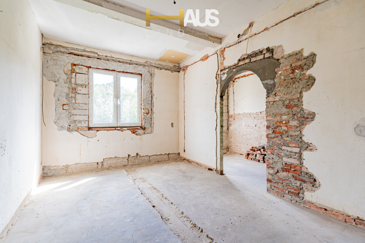 - Rozpoczęte prace remontowe – wymienione okna i drzwi wejściowe, wykonane wylewki betonowe, co daje dobry punkt startowy do dalszych prac,