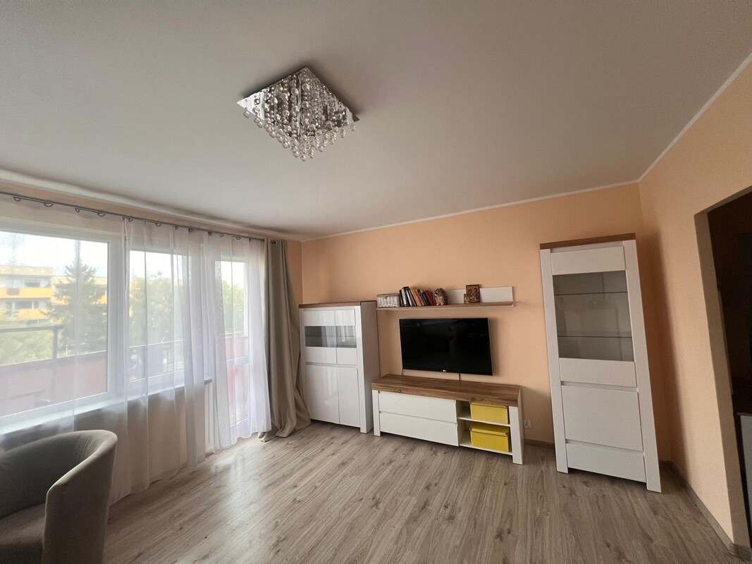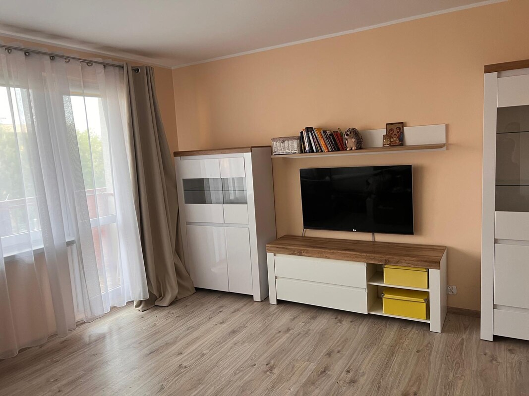 - przestronny salon z wyjściem na duży balkon (drewniana podłoga – idealna na poranną kawę lub letni odpoczynek),