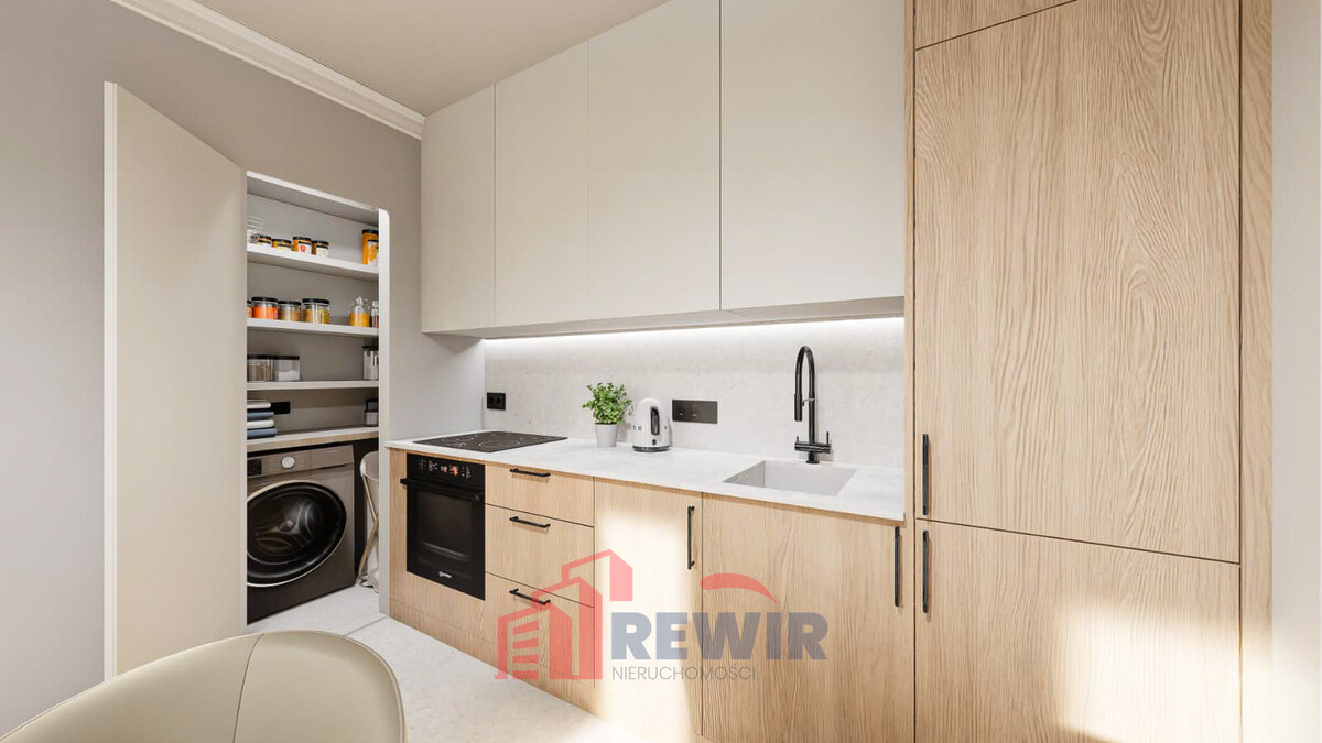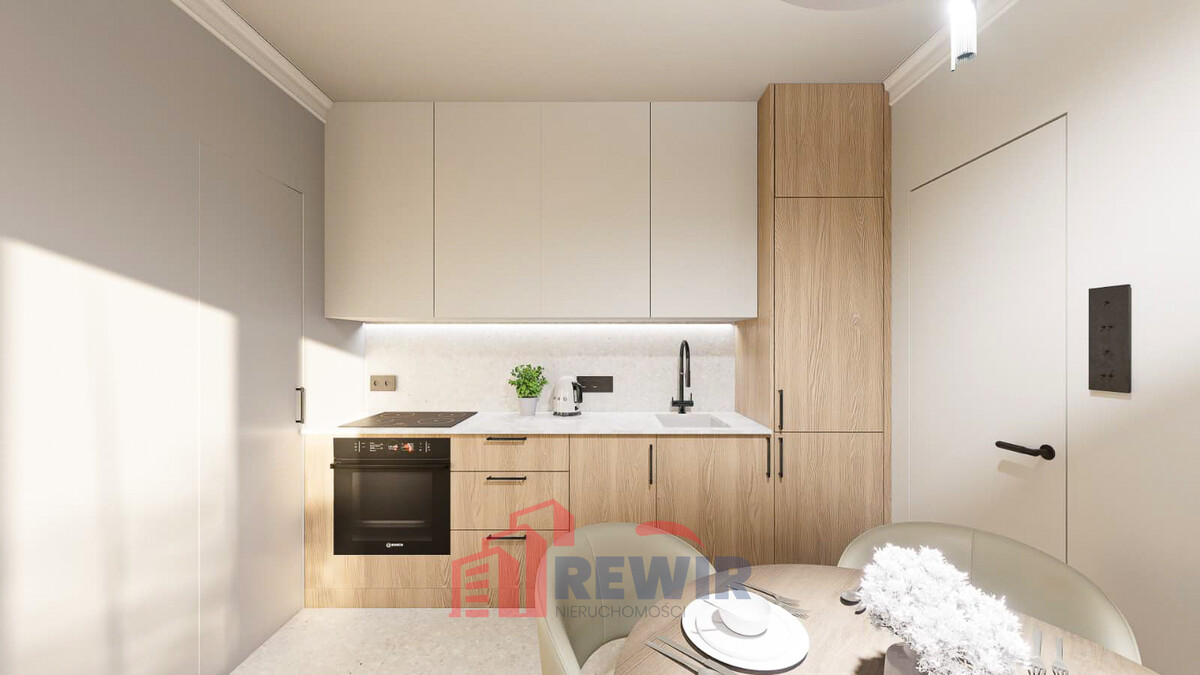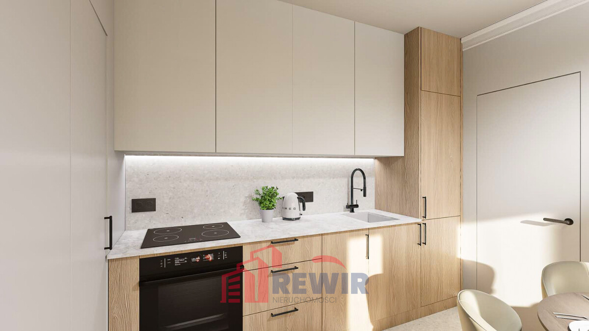 W ramach wykończenia zostanie zrobiona zabudowa kuchenna wykonana na wymiar oraz szafa na przedpokoju.