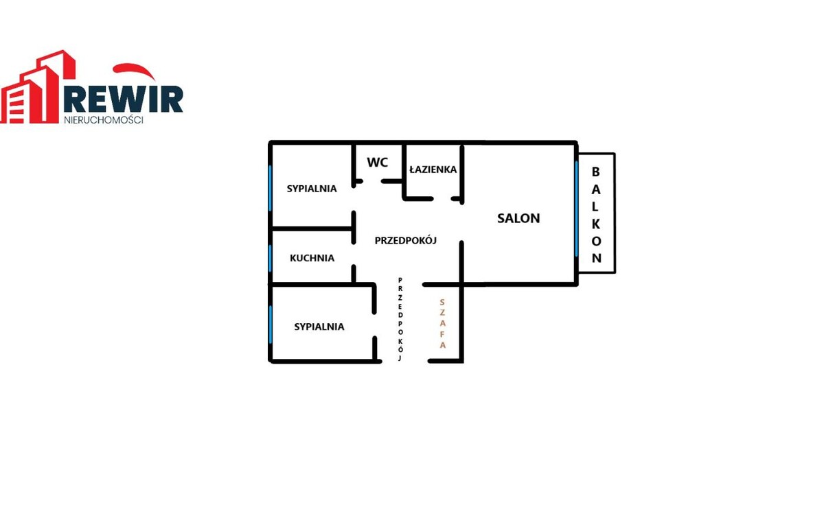 - 3 pokoje o pow. 61,40 m2, 4 piętro, balkon