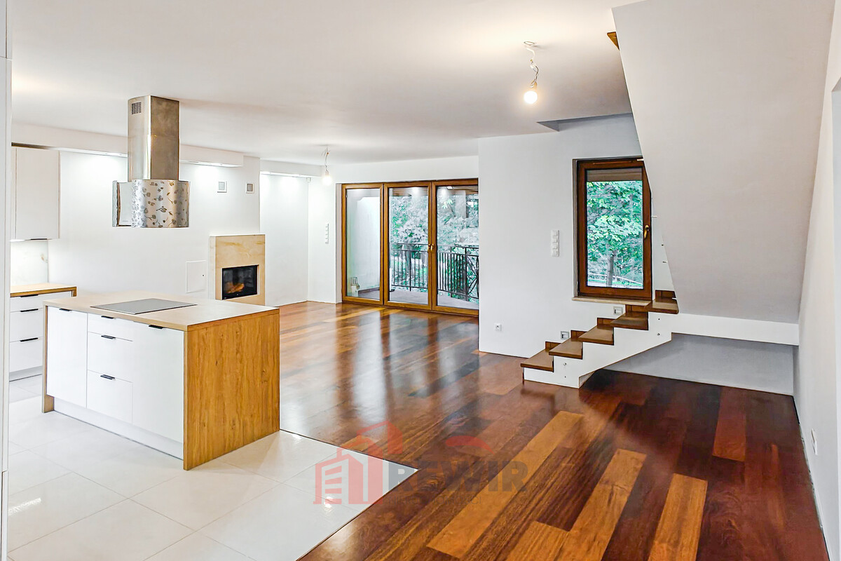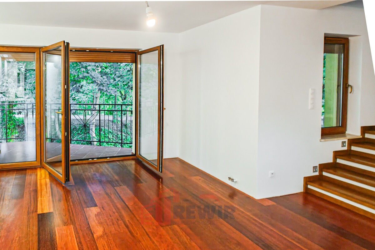- Wyjście na taras z malowniczym widokiem na pobliski park, co zapewnia relaksującą atmosferę