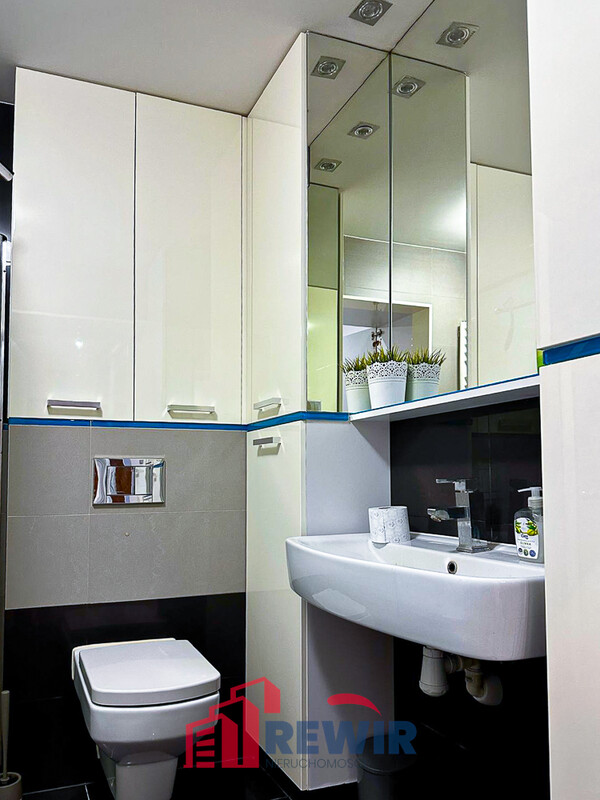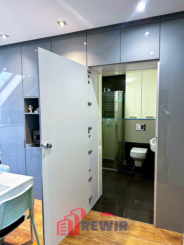 - Designerska łazienka z WC i prysznicem, dyskretnie ukryta za drzwiami w zabudowie szafy