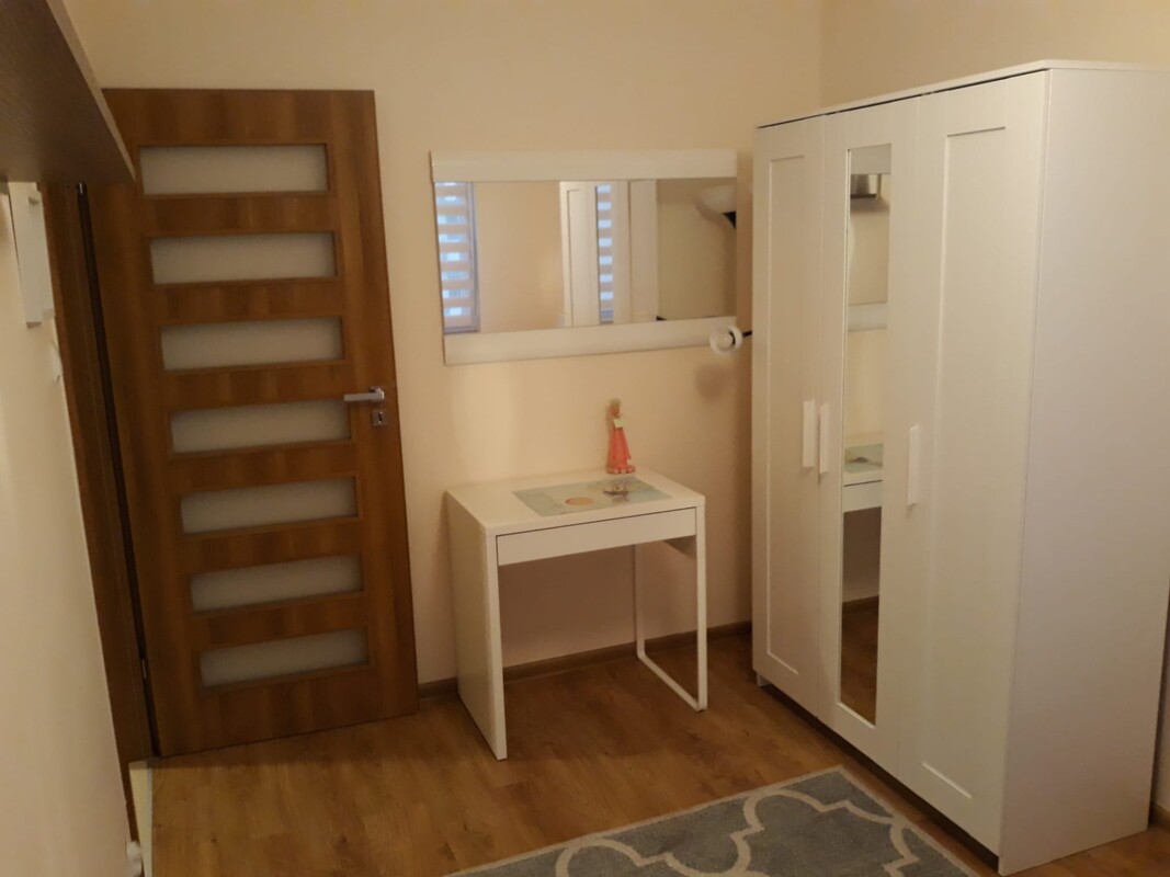 Mieszkanie rozkładowe: (salon) duży pokój z balkonem i wyodrębnioną garderobą, sypialnia (mniejszy pokój), półotwarta kuchnia, łazienka, przedpokój. Mieszkanie wymaga odświeżenia, odmalowania. Czynsz ok.700 zł za dwie osoby. Cena 345.000 zł (do negocjacji).