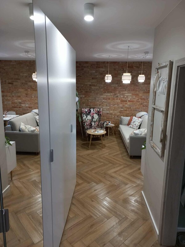 - Wyposażenie: płyta indukcyjna, piekarnik, lodówka, zmywarka, pralka, telewizor, nowoczesna klimatyzacja