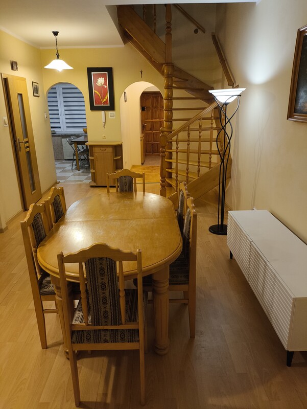 Ogromnym atutem jest układ dwupoziomowy, który daje wyraźne oddzielenie strefy dziennej i prywatnej.